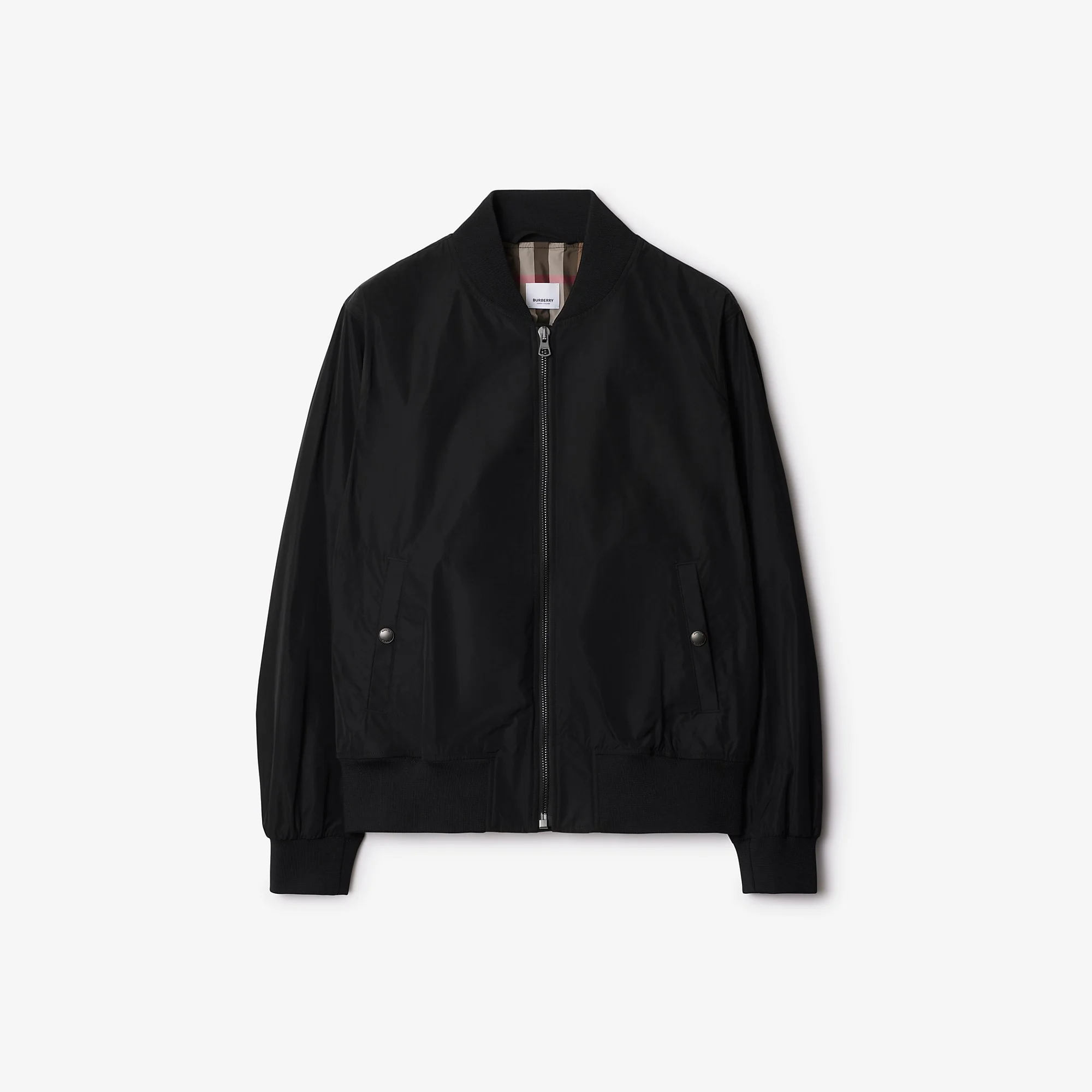 Product Details Regular fit. Fits true to size, take your normal size. A lightweight bomber jacket, cut to a regular fit. The style features a logo applique and is partially lined in the Burberry Check. - Zip closure - Side press-stud welt pockets - Rib-knit trims - Silicone patch with raised Burberry lettering at back - Machine wash - Item 81213461 Size & Fit - Regular fit. Fits true to size, take your normal size. - Length: 65cm/25.6in (size IT 50) Fabric & Care - Outer: 100% polyester - Trims: 100% polyester; 82% polyester, 17% polyamide, 1% elastane - Lining: 100% polyester - Imported