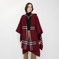 Product Details A hooded cape in cashmere, embroidered with a tonal Equestrian Knight Design. Made at a Scottish mill founded in 1797, the fabric is washed in local spring water and brushed for a soft finish. The inner is woven with Burberry Check. - Side patch pockets - Burberry Check inner - Embroidered Equestrian Knight Design at hem - Item 81152621 Size & Fit - 176 x 120cm/69.3 x 47.2in Fabric & Care - 100% cashmere - Specialist dry clean - Made in Scotland