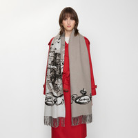 Product Details An Italian-made scarf in cashmere, jacquard-woven with hand-drawn artwork inspired by historic castles. The fabric is washed for an ultra-soft finish and raised nap. - Rectangular - Fringing at both ends - Jacquard-woven Burberry lettering at ends - Item 81101481 Size & Fit - 210 x 47cm/82.7 x 18.5in Fabric & Care - 100% cashmere - Specialist dry clean - Made in Italy