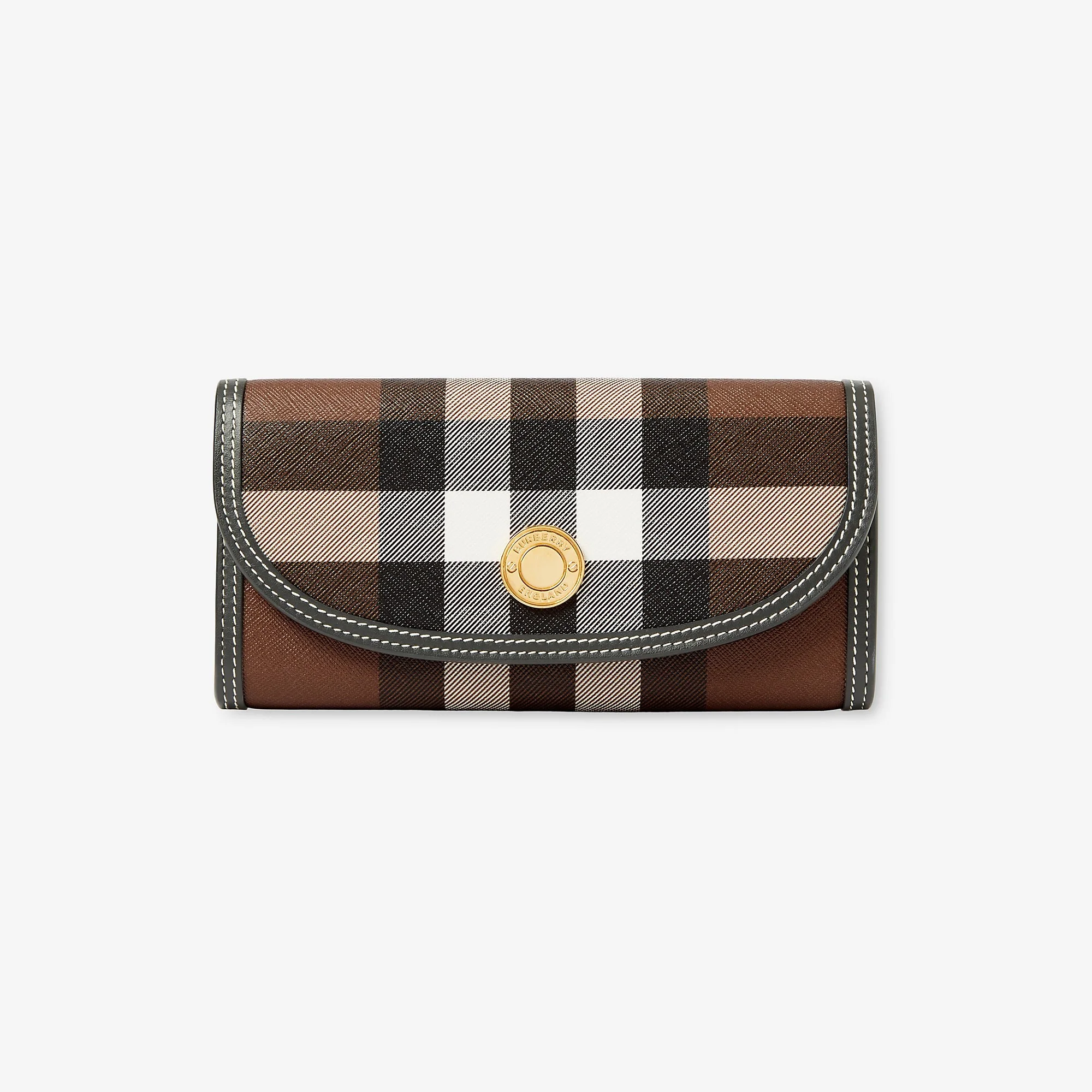 PRODUCT DETAILS A slim style in our Burberry Check, detailed with a polished logo graphic stud. - 19.5 x 4 x 10cm/7.7 x 1.6 x 3.9in Outer: 55% cotton, 45% polyurethane* Trim: 100% calf leather Inner: 100% calf leather Lining: 100% polyamide Foldover top with press-stud closure 12 card slots One interior zip compartment Two interior expandable compartments One exterior slip pocket, one interior slip pocket Hand-painted edges Polished metal hardware Imported *The main material of this product is made with at least 30% bio-based materials. Bio-based materials are derived from renewable natural resources such as plants and castor oil. Item 80726681