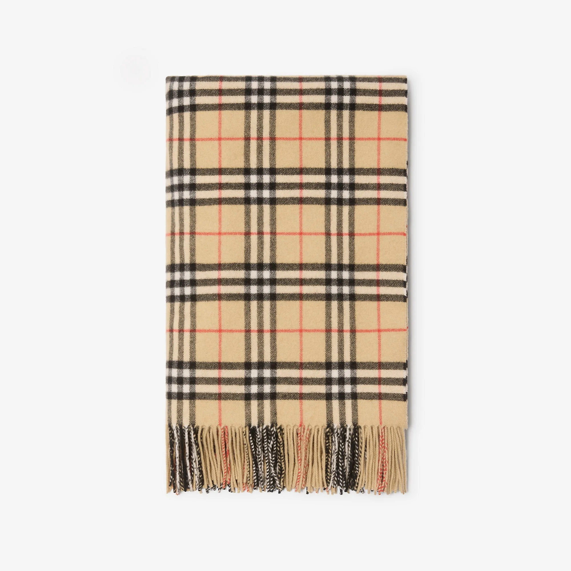 Product Details A blanket in cashmere, woven with the Burberry Check in signature sand beige. Made in Scotland at a mill founded in 1797, the fabric is washed in local spring water and brushed for an ultra-soft finish. - Rectangular - Fringing at both ends - Item 81194801 Size & Fit - 200 x 140cm/78.7 x 55.1in Fabric & Care - 100% cashmere - Specialist dry clean - Made in Scotland