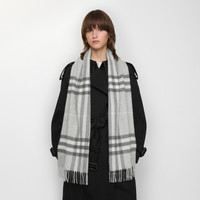 Product Details The iconic Burberry Check cashmere scarf, made in Scotland at a mill founded in 1797. Woven on traditional looms, the scarf takes more than 30 steps to complete. The fabric is washed in local spring water and brushed with teasels – dried flowers that are drawn along the surface of the cashmere to ’raise’ the cloth, creating a natural lustre and ultra-soft finish. - Rectangular - Fringing at both ends - Item 81126371 Size & Fit - 168 x 30cm/66.1 x 11.8in Fabric & Care - 100% cashmere - Specialist dry clean - Made in Scotland