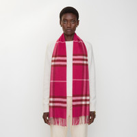 Product Details The iconic Burberry Check cashmere scarf, made in Scotland at a mill founded in 1797. Woven on traditional looms, the scarf takes more than 30 steps to complete. The fabric is washed in local spring water and brushed with teasels – dried flowers that are drawn along the surface of the cashmere to 'raise' the cloth, creating a natural lustre and ultra-soft finish. - Rectangular - Fringing at both ends - Item 81127091 Size & Fit - 168 x 30cm/66.1 x 11.8in Fabric & Care - 100% cashmere - Specialist dry clean - Made in Scotland