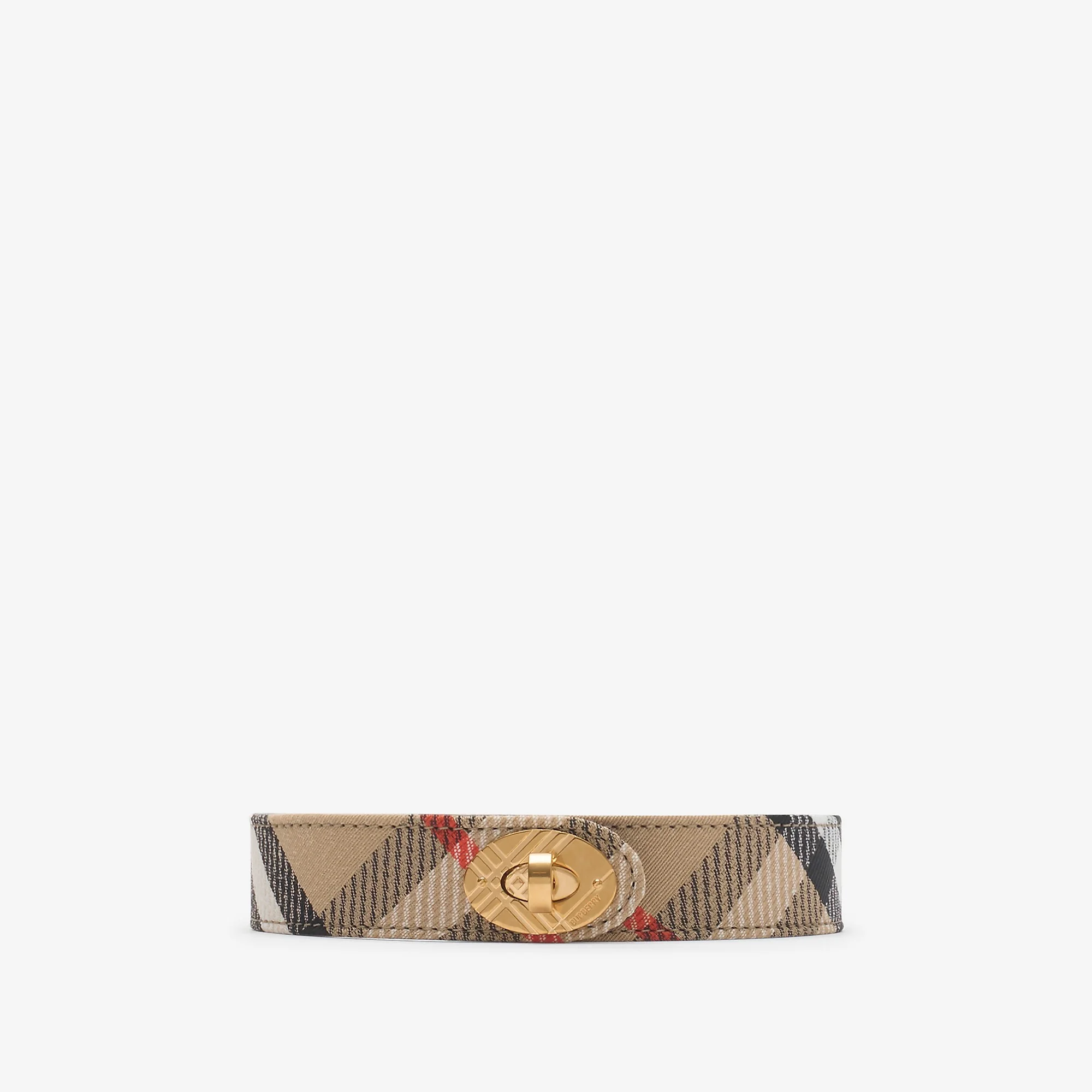 Product Details The signature check-engraved closure from our Cotswolds tote is recast in a new line of belts. Crafted in Italy, the cotton-blend strap is jacquard-woven with the Burberry Check in our signature sand beige colourway and lined with smooth calf leather. - Twist-lock closure - Hand-painted edges - Engraved Burberry lettering at closure - Comes with a dust bag - Item 81201971 Size & Fit - 2.5cm/1in wide Fabric & Care - Outer: 65% polyester, 35% cotton - Lining: 100% calf leather - Made in Italy