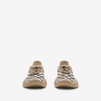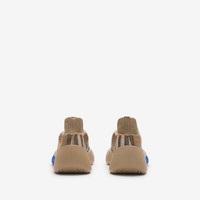 Product Details Italian-made sneakers with a breathable sock upper knitted with the Burberry Check. The leather-lined style features check laces with a B shield toggle and an oversized Equestrian Knight Design that wraps around the sole. Part of Burberry Classics, wardrobe foundations with a unique Burberry slant. - Rounded toe - Drawcord closure - Equestrian Knight Design at the sole - Comes with a dust bag - Item 80993261 Fabric & Care - Upper: 92% polyester, 4% elastane, 4% polyamide* - Lining: 100% calf leather - Sole: 75% polyurethane, 25% thermoplastic polyurethane - *The main material of this product is made with at least 50% recycled content - Made in Italy