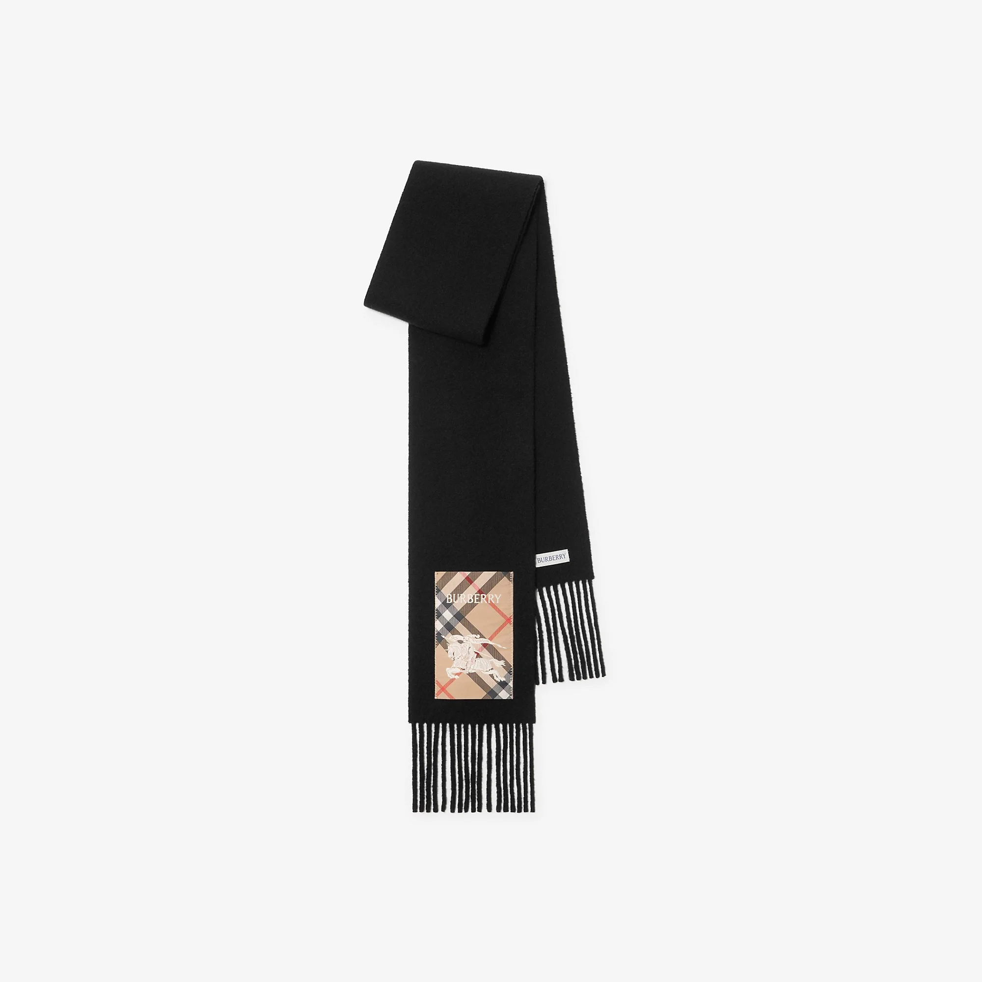 Product Details A cashmere scarf, made at a Scottish mill founded in 1797. Woven on traditional looms, the fabric is washed in local spring water and receives two further washes for an ultra-soft finish and fuller texture. Reworking the label from our signature trench coats, the style features an appliqued patch woven with the Burberry Check, logo and Equestrian Knight Design. - Rectangular - Fringing at both ends - Appliqued Burberry Check label - Item 81161071 Size & Fit - 168 x 15cm/66.1 x 5.9in Fabric & Care - 100% cashmere - Specialist dry clean - Made in Scotland