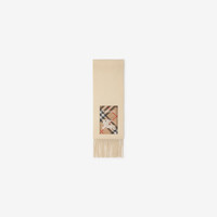 Product Details A cashmere scarf, made at a Scottish mill founded in 1797. Woven on traditional looms, the fabric is washed in local spring water and receives two further washes for an ultra-soft finish and fuller texture. Reworking the label from our signature trench coats, the style features an appliqued patch woven with the Burberry Check, logo and Equestrian Knight Design. - Rectangular - Fringing at both ends - Appliqued Burberry Check label - Item 81039951 Size & Fit - 168 x 15cm/66.1 x 5.9in Fabric & Care - 100% cashmere - Specialist dry clean - Made in Scotland