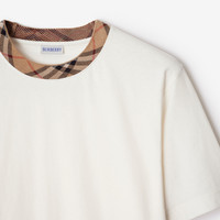 Product Details A crew-neck T-shirt in cotton jersey, cut to a relaxed fit. The design is detailed with Burberry Check taping in our signature sand beige colourway. - Rib-knit neckline - Relaxed fit: a looser cut than our regular fit. - Machine wash - Item 81101001 Size & Fit - Length: 72.5cm/28.5in (size UK M) - Model’s height: 188cm/6ft 2in. Model wears size UK M Fabric & Care - 100% cotton* - Trim: 91% cotton, 7% polyamide, 2% elastane - *The main material of this product contains at least 70% cotton, all of which is organically grown - Made in Portugal