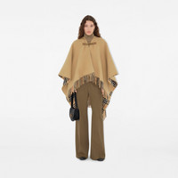 Product Details A wool cape made in Italy, woven with a Burberry Check lining. The style is secured with a horse-shaped clip inspired by our Equestrian Knight Design. Part of Burberry Classics, wardrobe foundations with a unique Burberry slant. - Fringing at both ends - Comes with a garment bag - Item 80966301 Size & Fit - 140 x 140cm/55.1in x 55.1in Fabric & Care - 100% wool - Trim: 100% calf leather - Specialist dry clean - Made in Italy