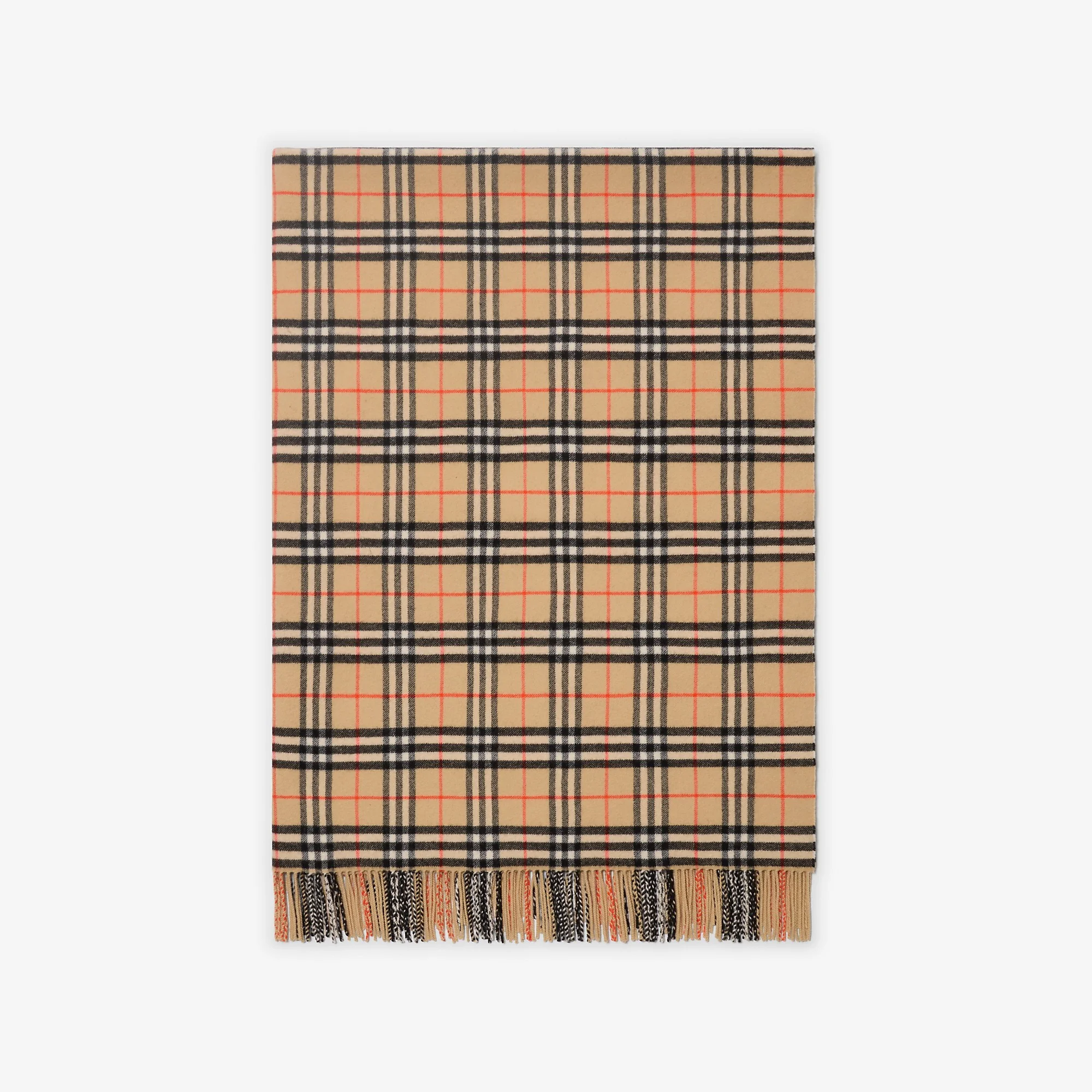 Product Details A blanket in wool cashmere woven with the Burberry Check. Made at a 200-year-old Scottish mill, the fabric is washed in local spring water and brushed for an ultra-soft finish. - Rectangular - Fringing at both ends - Item 81095731 Size & Fit - 200 x 140cm/78.7 x 55.1in Fabric & Care - 90% wool, 10% cashmere - Specialist dry clean - Made in Scotland