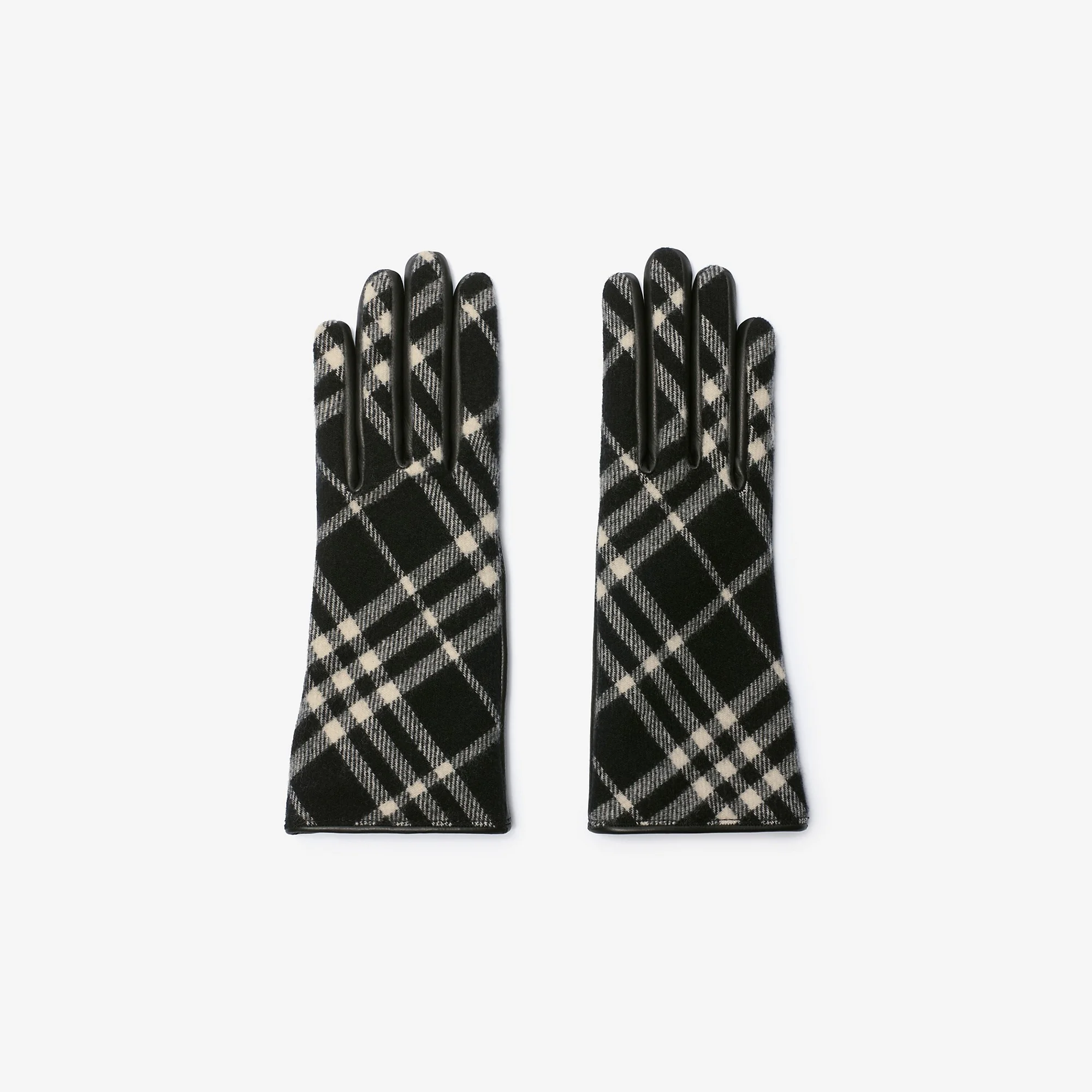 Product Details A pair of gloves made in Italy from Burberry Check wool cashmere backed with grainy calf leather. The design is finished with a logo-engraved metal stud and lined in soft cashmere silk. - Press-stud closure - Item 81142191 Fabric & Care - Outer: 86% wool, 14% cashmere - Palm: 100% calf leather - Lining: 70% cashmere, 30% silk - Made in Italy