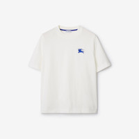 Product Details A T-shirt in lightweight cotton jersey, embroidered with the Equestrian Knight Design. The style is cut to a regular fit. Part of Burberry Classics, wardrobe foundations with a unique Burberry slant. - Rib-knit neckline - Embroidered Equestrian Knight Design at chest - Regular fit. Fits true to size, take your normal size. - Machine wash - Item 80849701 Size & Fit - Length: 61cm/24in (size UK S) - Model’s height: 175cm/5ft 9in. Model wears size UK S Fabric & Care - 100% cotton* - Trim: 100% cotton - *100% of the cotton in the main material is organic - Made in Portugal