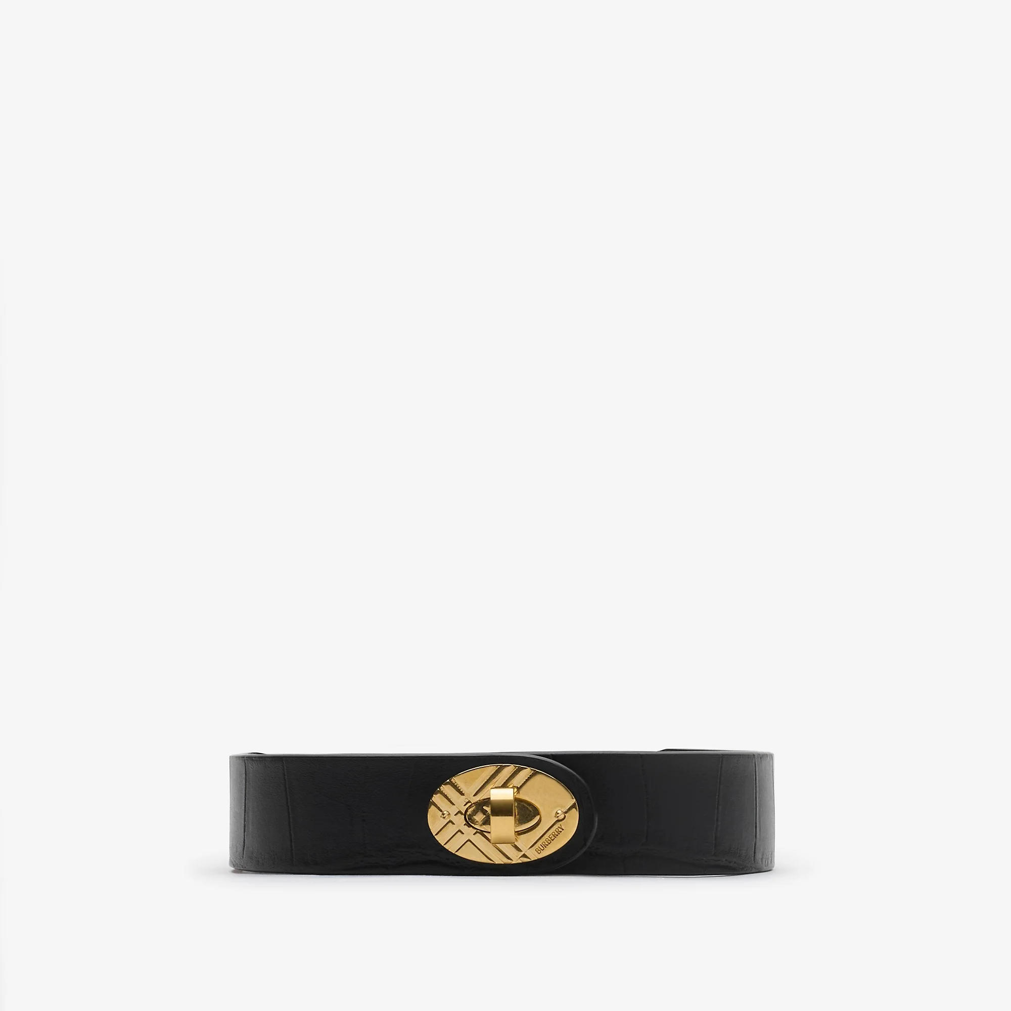 Product Details A slim belt made in Italy from crocodile-effect leather. The design is detailed with a gold-plated check-engraved closure, a signature of our Cotswolds collection. - Twist-lock closure - Hand-painted edges - Engraved Burberry lettering at closure - Comes with a dust bag - Item 81201951 Size & Fit - 2.5cm/1in wide Fabric & Care - Outer: 100% calf leather - Lining: 100% calf leather - Made in Italy