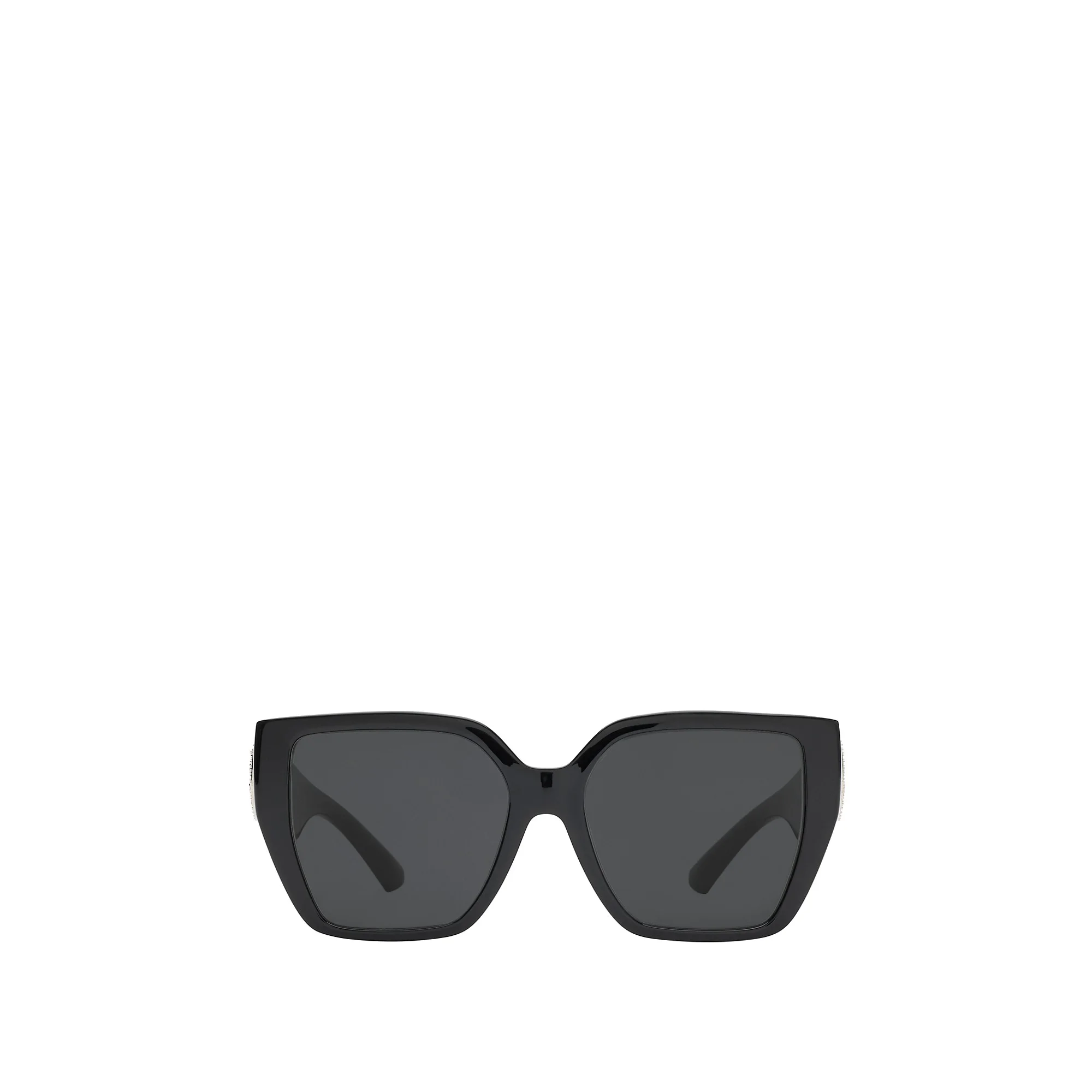 Product Details A pair of square sunglasses made in Italy from glossy nylon. The wide sculptural temples feature a cut-out Equestrian Knight Design motif dotted with purple crystals. - Scratch-resistant dark grey lenses with 100% UV protection - Printed Burberry lettering at temples - Comes with a leather case and cleaning cloth - Item 40851961 Size & Fit - Frame width: 13.5cm/5.3in. Frame height: 5.8cm/2.3in Fabric & Care - Frame: 100% nylon* - Trim: 100% metal - *The bio-based nylon used for the frame contains at least 45% bio-based content derived from plant-based renewable resources - Made in Italy