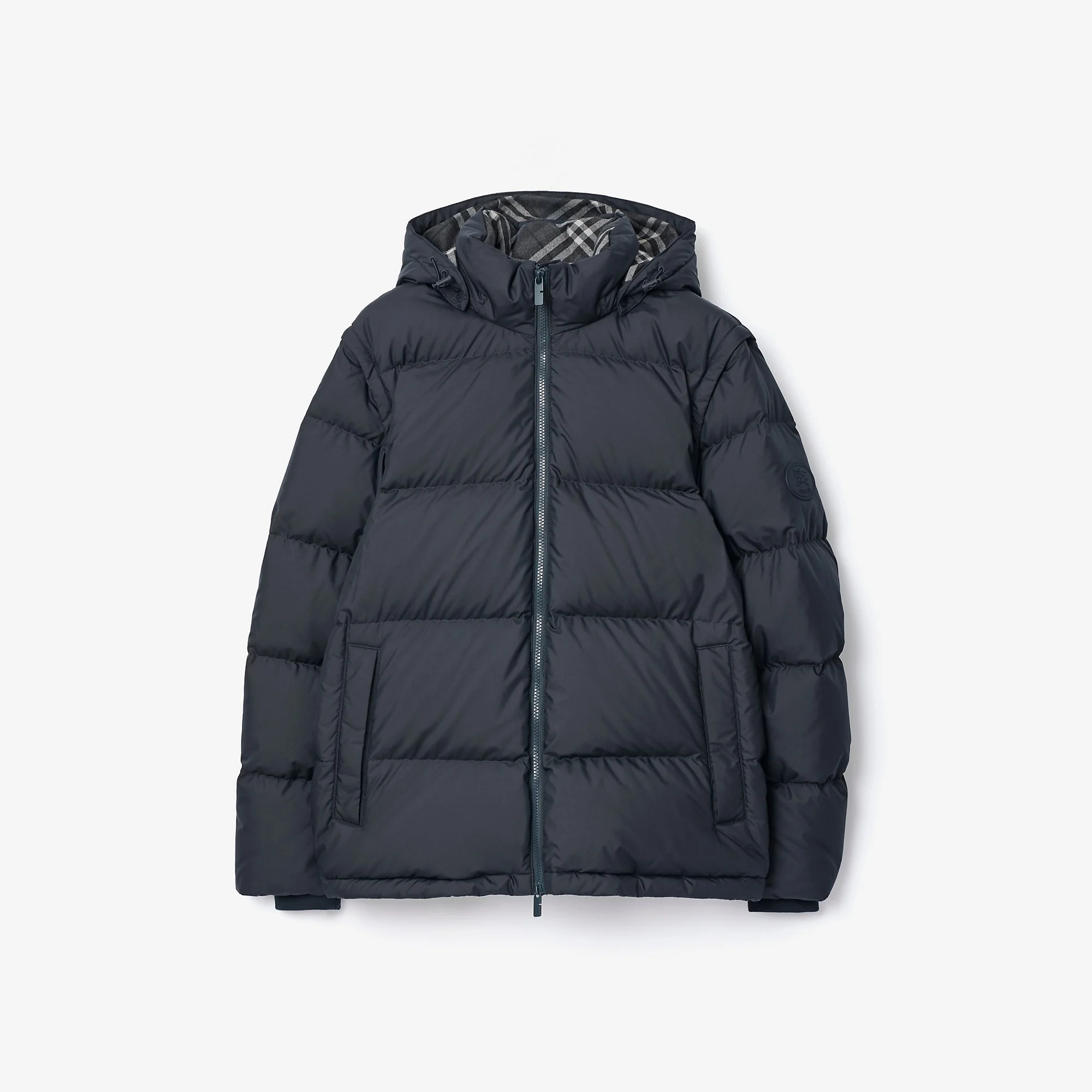Product Details A puffer jacket filled with goose down and insulating fibres, appliqued with our Knight stamp – an archival motif from the 1980s. Detachable sleeves switch the design from a jacket to a gilet. The style is cut to a relaxed fit and features a Burberry Check wool lining at the detachable hood and collar. - Two-way zip closure - Detachable drawcord hood - Detachable sleeves - Side zip pockets - Drawcord hem - Storm cuffs - Burberry Check lining at hood and collar - Appliqued Equestrian Knight Design at sleeve - Comes with a garment bag - Relaxed fit: a looser cut than our regular fit. - Item 81126611 Size & Fit - Length: 72.7cm/28.6in (size UK M) - Model's height: 189cm/6ft 2in. Model wears size UK M Fabric & Care - Outer: 100% polyester bonded to 100% polyester - Trim: 79% polyester, 20% polyamide, 1% elastane - Lining: 100% polyamide - Hood lining: 100% wool - Filling: 90% goose down, 10% goose feathers - Wadding: 100% polyester fibres - Specialist dry clean - Imported