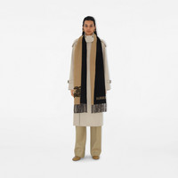Product Details A reversible scarf in cashmere, jacquard-woven with the Equestrian Knight Design and a logo. Brushed for an ultra-soft finish. - Rectangular - Fringing at both ends - Jacquard-woven Burberry lettering - Item 80787831 Size & Fit - 210 x 45cm/82.7 x 17.7in Fabric & Care - 100% cashmere - Specialist dry clean - Made in Italy