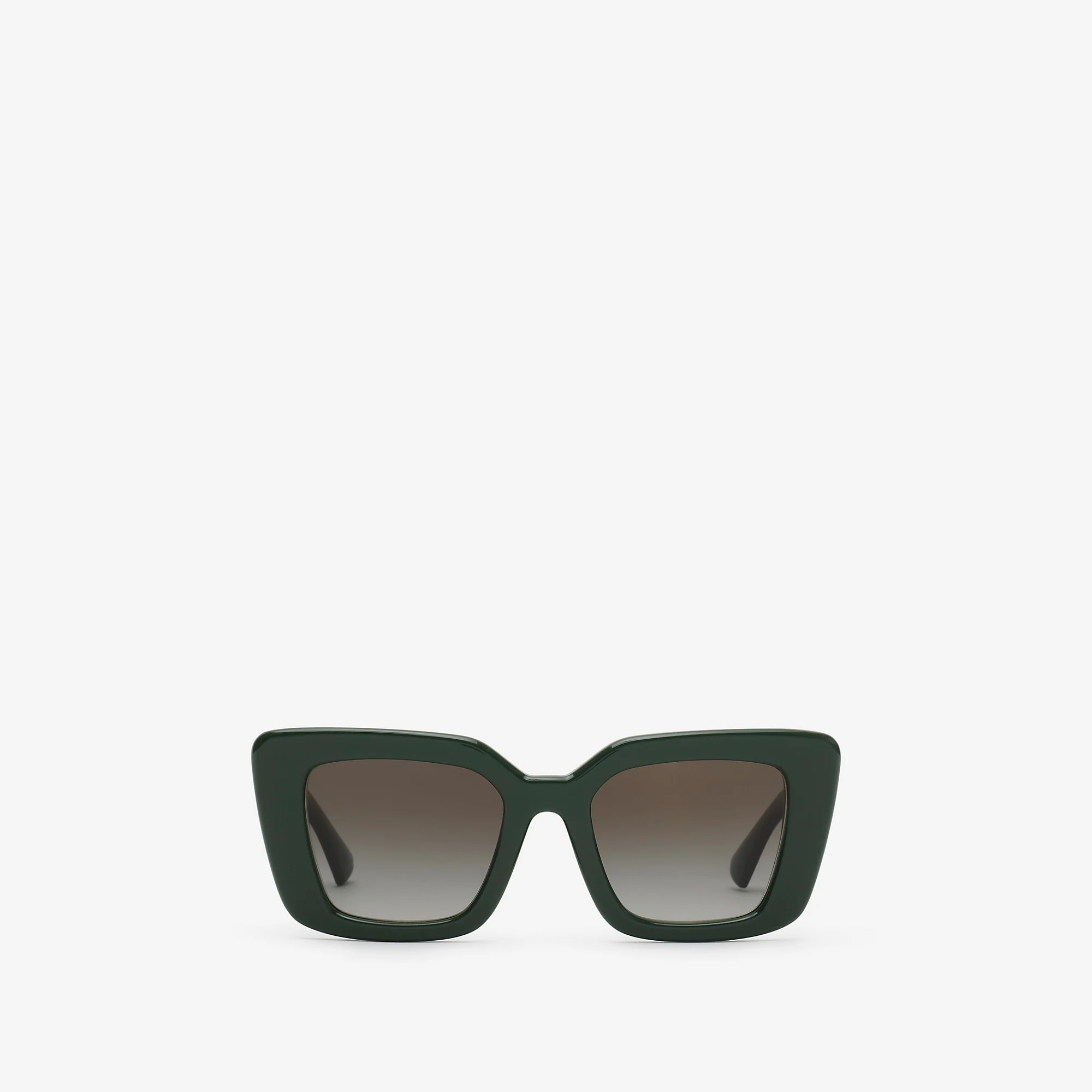 Product Details A pair of square cat-eye sunglasses made in Italy from glossy acetate. The wide sculptural temples are inlaid with a cut-out Equestrian Knight Design motif and printed with our logo. - Scratch-resistant gradient mud brown lenses with 100% UV protection - Printed Burberry lettering at temples - Engraved Equestrian Knight Design at lens - Also available in an alternative fit - Comes with a hard leather case and cleaning cloth - Item 40849741 Size & Fit - Frame width: 14.7cm/5.8in. Frame height: 5.3cm/2.1in Fabric & Care - Frame: 100% acetate - Trim: 100% metal - Made in Italy