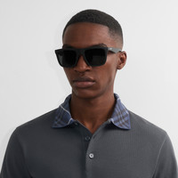 Product Details A pair of square-frame sunglasses made in Italy from tortoiseshell nylon, subtly embossed with a check pattern. The temples are printed with the Burberry logo. - Scratch-resistant dark grey lenses with 100% UV protection - Engraved Equestrian Knight Design at lens - Comes with a hard leather case and cleaning cloth - Item 40845171 Size & Fit - Frame width: 14.9cm/5.9in. Frame height: 5.1cm/2in Fabric & Care - Frame: 100% nylon* - *The bio-based nylon used for the frame contains at least 45% bio-based content derived from plant-based renewable resources - Made in Italy