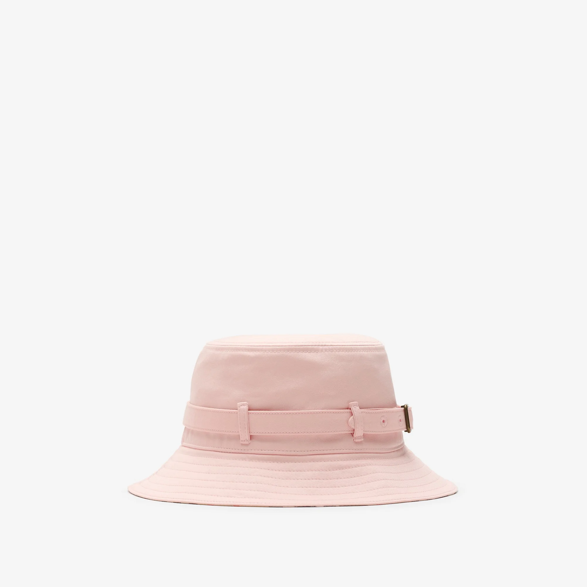 Product Details A bucket hat made from cotton gabardine woven at the Burberry Mill in Yorkshire. The style is lined with Burberry Check in the signature sand colourway and features a B buckle belt inspired by our iconic trench. - Item 81107631 Fabric & Care - Outer: 100% cotton - Lining: 100% cotton - Made in Italy