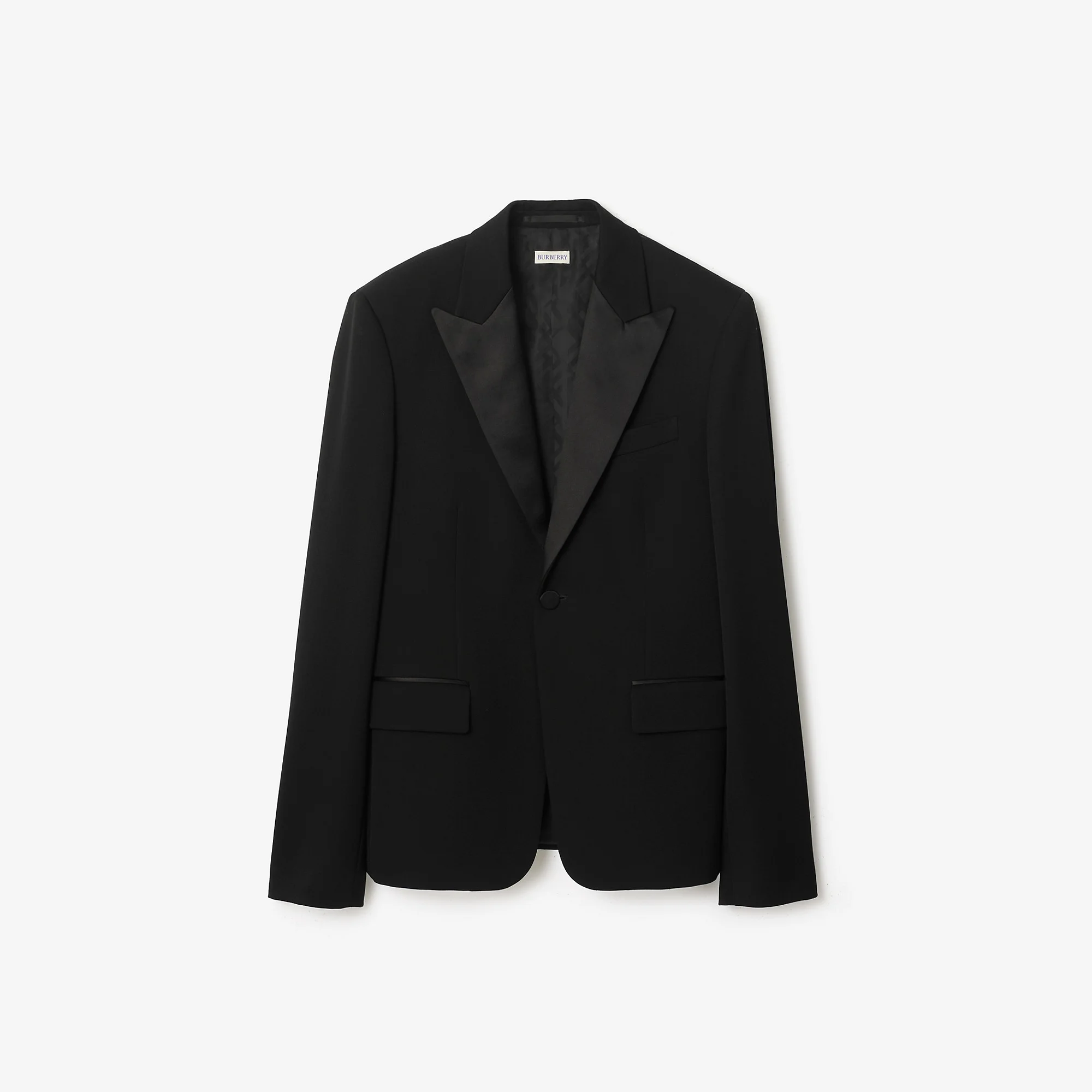 Product Details Slim fit: this style is cut to a fitted silhouette. Fits true to size, take your normal size. A tuxedo jacket made in Italy from grain de poudre wool with peaked lapels and trims in contrasting silk satin. Tailored to a slim fit, the single-button style has a half-canvas construction for a lightly structured shape and is fully lined with a tonal check. - Single-breasted button closure - Peak lapels - Chest welt pocket, side flap pockets - Buttoned cuffs - Single vent - Fully lined, half-canvas construction - Comes with a garment bag - Item 81180531 Size & Fit - Slim fit: this style is cut to a fitted silhouette. Fits true to size, take your normal size. - Length: 78cm/30.7in (size IT 50) - Model’s height: 188cm/6ft 2in. Model wears size IT 50 Fabric & Care - Outer: 100% wool - Trim: 100% silk - Lining: 100% viscose - Buttons: buffalo horn - Specialist dry clean - Made in Italy