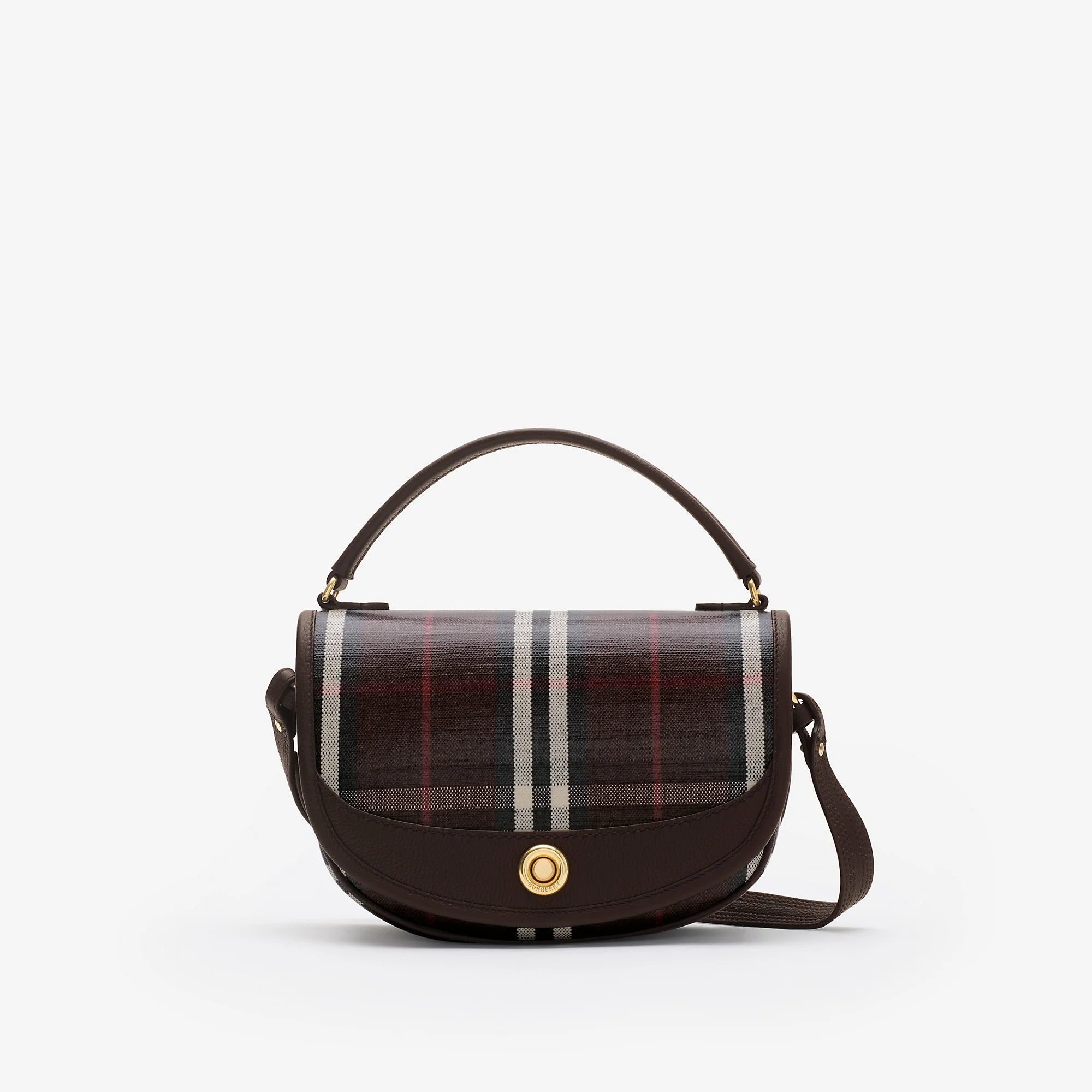 Product Details Rooted in the outdoors, a crossbody bag made in Italy from a cotton linen blend trimmed with grainy calf leather and lined in cotton. The fabric is jacquard-woven with the Burberry Check and has a coated finish inspired by rainwear. A detachable leather strap switches the design from a crossbody to top handle bag. - Leather top handle - Detachable, adjustable leather strap - Magnetic push-button closure - Interior slip pocket - Hand-painted edges - Brushed metal hardware - Engraved Burberry lettering at closure - Cotton lining - Comes with a dust bag - Item 81146431 Size & Fit - 24.5 x 8 x 18cm/9.7 x 3.2 x 7.1in. Min. strap drop: 42cm/16.5in. Max. strap drop: 53cm/20.9in Fabric & Care - 69% cotton, 21% viscose, 10% linen - Trim: 100% calf leather - Lining: 100% cotton - Made in Italy