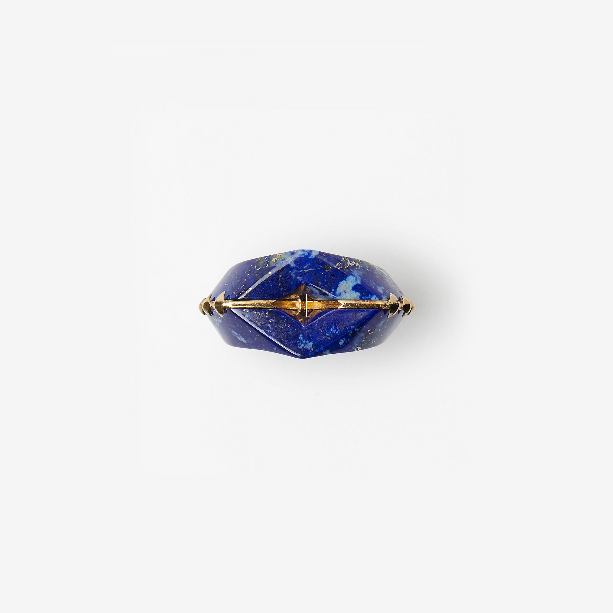 Product Details A ring made in Italy from sterling silver with gold plating. The design features carved lapis lazuli and a hollow cutout. - Engraved Burberry lettering at inner - Size 49: 15.6mm - Size 51: 16.2mm - Size 53: 16.9mm - Size 57: 18.2mm - Size 59: 18.8mm - Size 61: 19.4mm - Item 80796781 Fabric & Care - 100% sterling silver with gold plating - Embellishment: 100% lapis lazuli - Made in Italy