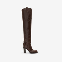 Product Details Grounded in our heritage of outdoor pursuits, the Cavalier boots are made in Italy from smooth calf leather. The thigh-high, column silhouette features pull tabs and buckled ankle straps – inspired by equestrian styles and reworked with a heel. Our Equestrian Knight Design is moulded at the sole in signature Knight Blue. - Rounded toe - Equestrian Knight Design at sole - Engraved Burberry lettering at buckle - Comes with a dust bag - Item 81143971 Size & Fit - Heel height: 8.5cm/3.4in. Length from top of heel to top of boot: 63cm/24.8in. Top circumference: 45cm/17.7in Fabric & Care - Upper: 100% calf leather - Trim: 60% copper, 40% zinc alloy - Lining: 90% calf leather, 6% polyester, 4% polyurethane - Sole: 90% calf leather, 6% thermoplastic polyurethane, 4% ABS - Made in Italy