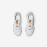 Product Details A pair of Italian-made leather sneakers with tonal topstitching inspired by sports styles. The design is set on a lightweight sole and features Burberry Check pull tabs and an embroidered Equestrian Knight Design. - Lace-up closure - Embroidered Equestrian Knight Design at side - Equestrian Knight Design at sole - Comes with a dust bag - Item 81091901 Fabric & Care - Upper: 100% lambskin - Trim: 68% polyester, 32% polyamide - Lining: 62% lambskin, 33% leather, 3% polyester, 2% polyurethane - Sole: 100% thermoplastic polyurethane - Made in Italy