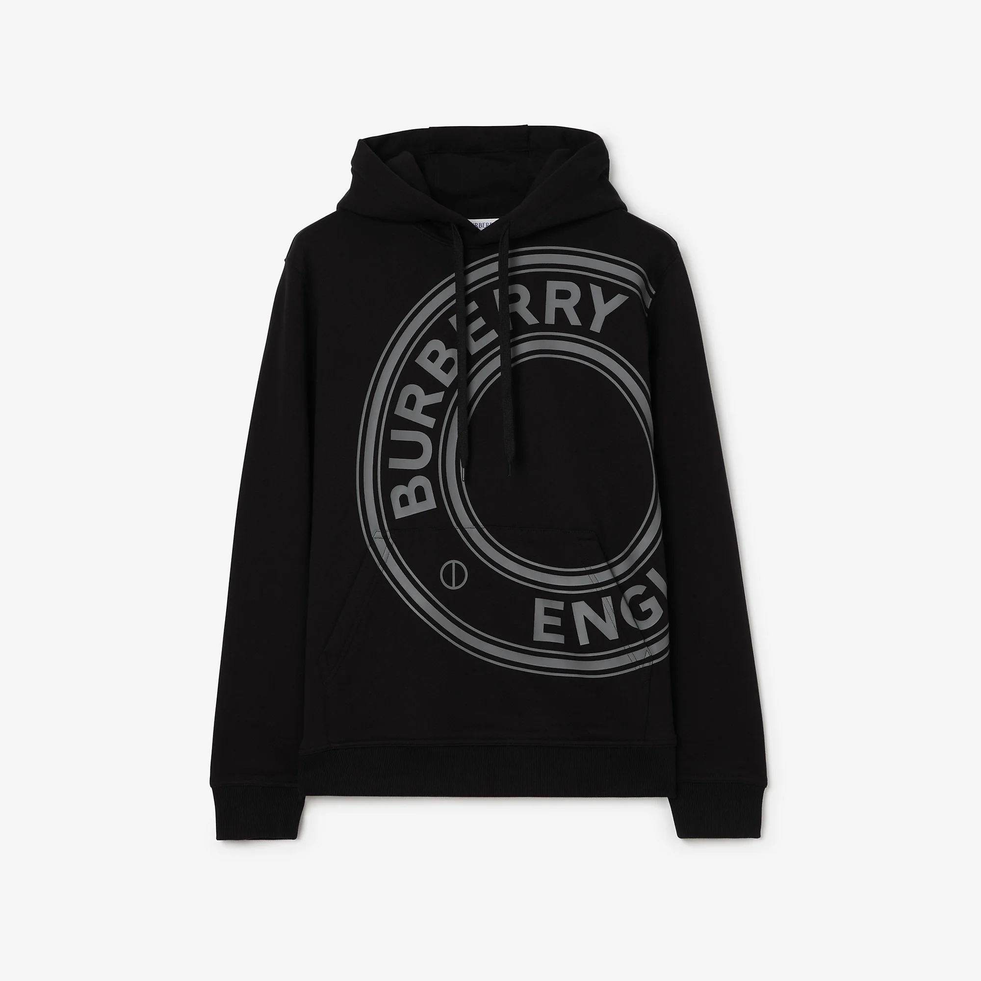 Product Details A cotton hoodie printed with our logo graphic. - Drawcord hood - Pouch pockets - Rib-knit trims - Printed Burberry lettering at front - Machine wash - Item 81209621 Size & Fit - Length: 71cm/28in (size UK L) Fabric & Care - 100% cotton - Trim: 97% cotton, 3% elastane - Imported