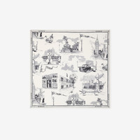 Product Details A scarf made in Italy from silk twill. The design is printed with hand-drawn artwork depicting iconic London landmarks including the Houses of Parliament, Tower Bridge, Trafalgar Square and our Horseferry House headquarters. - Square - Hand-rolled edges - Printed Burberry lettering at border - Item 81103801 Size & Fit - 90 x 90cm/35.4 x 35.4in Fabric & Care - 100% silk - Specialist dry clean - Made in Italy