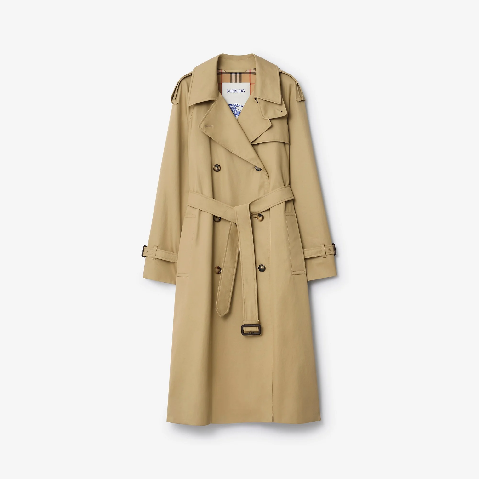 Product Details A fresh expression of Burberry’s rainwear heritage, the Castleford trench coat is crafted in England from water-resistant cotton gabardine and treated for a soft finish. Cut to a generous, regular fit with raglan sleeves, for effortless layering over knitwear and tailoring. Inside is Burberry Check cotton in signature sand beige. - Double-breasted button closure - Throat latch - Epaulettes - B buckle belt - Side welt pockets - Belted cuffs - Back vent - Burberry Check lining and undercollar - Comes with a garment bag - Regular fit. Fits true to size, take your normal size. - Item 81190661 Size & Fit - Length: 115cm/45.3in (size UK 8) - Model’s height: 180cm/5ft 11in. Model wears size UK 8 Fabric & Care - Outer: 100% cotton* - Lining: 100% cotton - Sleeve lining: 100% viscose - Buckles: 100% calf leather - Buttons: buffalo horn - *The main material of this product contains at least 70% cotton, all of which is organically grown - Specialist dry clean - Made in Yorkshire, England