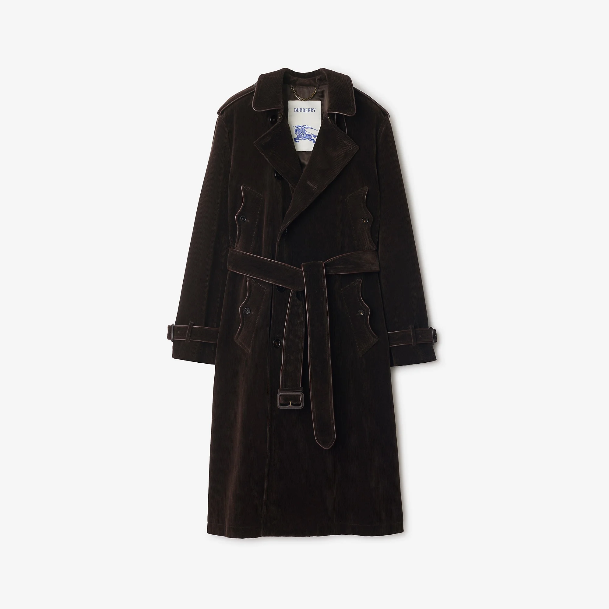 Product Details A twist on our heritage silhouette, the Burberry trench coat is reimagined in cotton corduroy with a satin lining. The style features tonal leather piping and an archival design inspires the curlicue shape of the pockets. Debuted on the Burberry Winter 2025 runway and tailored to a regular fit with a belt to adjust the silhouette. - Double-breasted button closure - Hook collar closure - Throat latch - Epaulettes - B buckle belt - Side button welt pockets - Belted cuffs - Back button vent - Comes with a garment bag - Regular fit. Fits true to size, take your normal size. - Item 81148291 Size & Fit - Length: 125cm/49.2in (size IT 50) - Model’s height: 184cm/6ft. Model wears size IT 50 Fabric & Care - Outer: 100% cotton - Trim: 100% lambskin - Lining: 100% viscose - Sleeve lining: 95% cupro, 5% acetate - Pocket lining: 100% cotton - Buttons: buffalo horn - Specialist dry clean - Imported