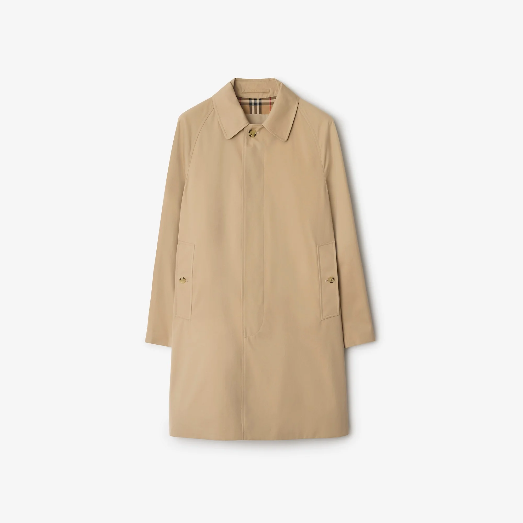 Product Details The original Burberry car coat, made in England from shower-resistant cotton gabardine. Inside is Burberry Check cotton, used to line our coats since the 1920s. Part of the Heritage Collection, the Camden is cut to a regular fit with raglan sleeves. Single-breasted button closure Side button welt pockets Button-tab cuffs Back button vent Burberry Check lining and undercollar - Regular fit. Fits true to size, take your normal size. - Item 80793961 Size & Fit - Length: 98cm/38.6in (size IT 50) - Model’s height: 185cm/6ft 1in. Model wears size IT 50 Fabric & Care - Outer: 100% cotton - Lining: 100% cotton - Sleeve lining: 100% viscose - Specialist dry clean - Made in Yorkshire, England