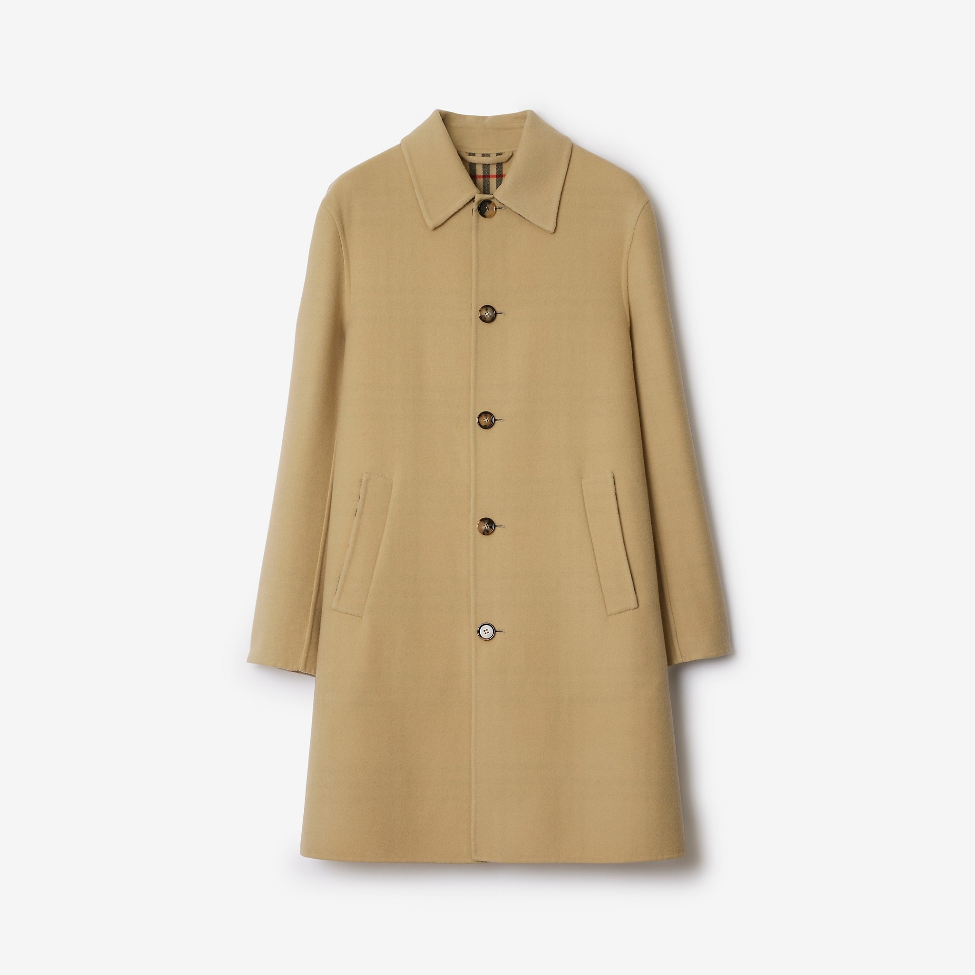 Product Details A car coat made in Italy from double-faced wool, woven with a Burberry Check inner. The design is cut to a slim fit with set-in sleeves. Part of Burberry Classics, wardrobe foundations with a unique Burberry slant. - Button closure - Side welt pockets - Back vent - Comes with a garment bag - Slim fit: this style is cut to a fitted silhouette. Fits true to size, take your normal size. - Item 80955411 Size & Fit - Length: 101cm/39.8in (size IT 52) - Model’s height: 191cm/6ft 3in. Model wears size IT 52 Fabric & Care - 100% wool - Sleeve lining: 100% viscose - Buttons: buffalo horn - Specialist dry clean - Made in Italy