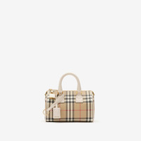 Product Details A compact bowling bag made in Italy from a coated cotton blend printed with the Burberry Check and lined in cotton. The compact design is trimmed in smooth calf leather and features a leather-wrapped padlock and key. A detachable strap switches the style to a shoulder bag. - Rolled leather top handles - Detachable, adjustable leather strap - Zip closure - Hand-painted edges - Polished metal hardware - Leather-wrapped padlock and key - Cotton lining - Comes with a dust bag - Item 81251071 Size & Fit - 18.5 x 11 x 12cm/7.3 x 4.3 x 4.7in. Min. strap drop: 47.5cm/18.7in. Max. strap drop: 52.5cm/20.7in Fabric & Care - Outer: 48% cotton, 38% polyurethane, 14% polyester - Trim: 100% calf leather - Lining: 100% cotton - Made in Italy