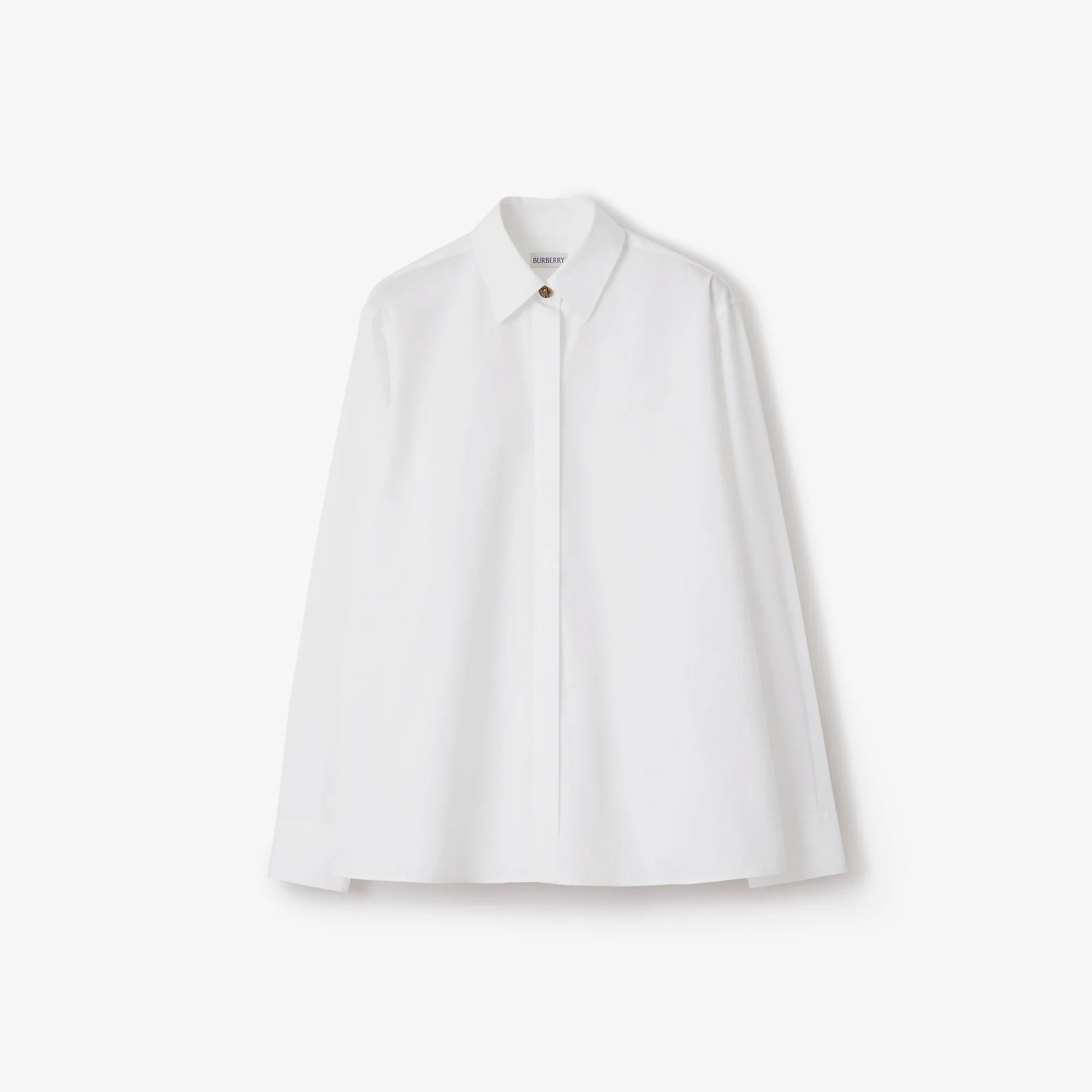 Product Details A shirt in cotton poplin, cut to an oversized fit and shaped with gathers at the back for a flared silhouette. The style has a neat concealed closure with a domed Equestrian Knight Design top button in an antique finish. - Button closure - Point collar - Single-button cuffs - Straight hem - Embroidered Equestrian Knight Design at chest - Oversized fit: our loosest cut, designed for exaggerated proportions. Consider taking a size down. - Machine wash - Item 81159821 Size & Fit - Length: 67cm/26.4in (size UK 6) - Model’s height: 180cm/5ft 11in. Model wears size UK 6 Fabric & Care - 100% cotton - Buttons: mother-of-pearl - Imported