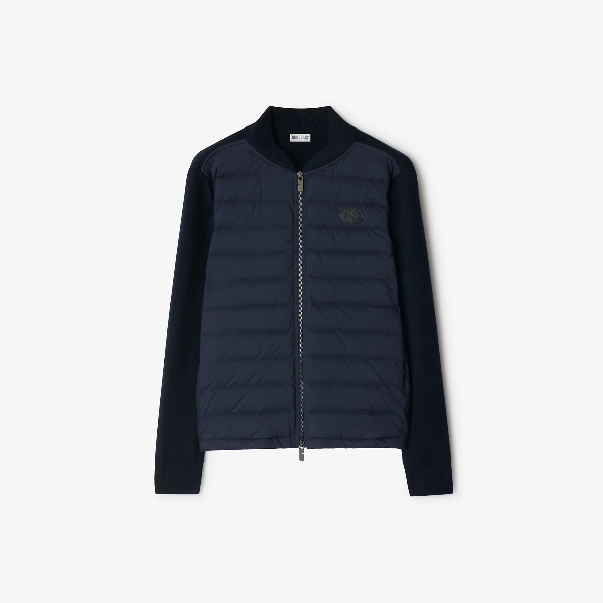 Product Details A jacket in quilted nylon filled with goose down and feathers, cut to a slim fit. The hybrid design features a wool back panel and sleeves and is finished with B-cut zip pulls and our Knight stamp – an archival motif first seen on Burberry bags in the 1980s. - Two-way zip closure - Side zip pockets, interior zip pocket - Leather patch with Equestrian Knight Design at chest - Comes with a garment bag - Slim fit: this style is cut to a fitted silhouette. Fits true to size, take your normal size. - Item 81102691 Size & Fit - Length: 60.7cm/23.9in (size UK M) - Model’s height: 184cm/6ft. Model wears size UK M Fabric & Care - Outer: 100% polyamide - Back panel and sleeves: 100% wool - Trims: 87% wool, 12% polyamide, 1% elastane; 93% wool, 6% polyamide, 1% elastane; 100% calf leather - Lining: 100% polyamide - Filling: 90% goose down, 10% goose feathers - Wadding: 100% polyester fibres - Specialist dry clean - Imported