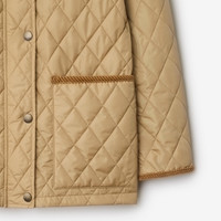 Product Details A quilted barn jacket made from lightweight nylon, lined with Burberry Check cotton twill in our signature sand colourway. Cut to a regular fit, the style features a corduroy collar and trims. - Zip and press-stud closure - Side patch pockets - Burberry Check lining and undercollar - Equestrian Knight Design tag at side - Comes with a garment bag - Regular fit. Fits true to size, take your normal size. - Item 81074641 Size & Fit - Length: 73cm/28.7in (size UK S) - Model's height: 180cm/5ft 11in. Model wears size UK S Fabric & Care - Outer: 100% polyamide - Trim: 100% cotton - Lining: 100% cotton - Filling: 100% polyester fibres - Specialist dry clean - Imported