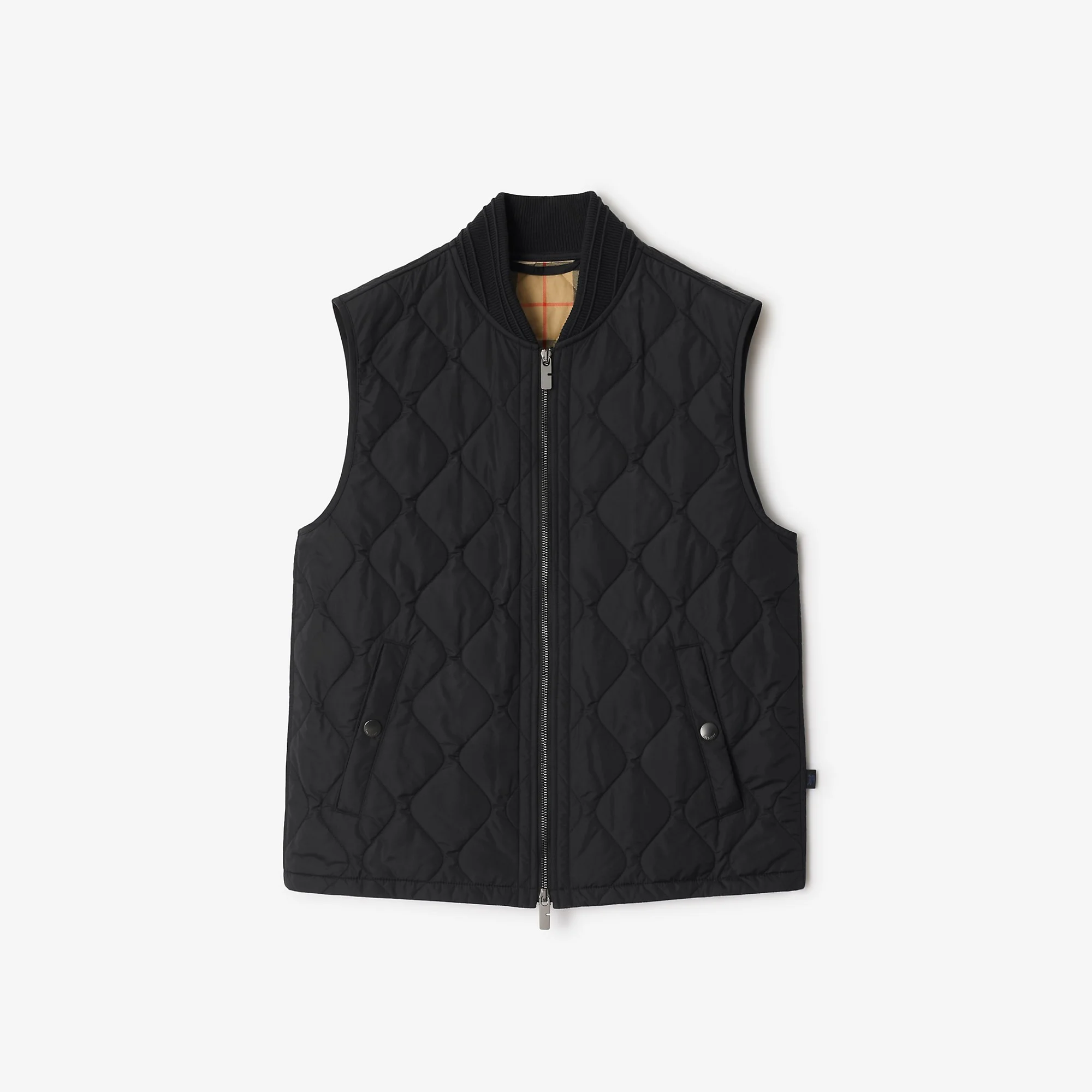 Product Details A quilted gilet in water-resistant nylon with a rib-knit collar. The lightly padded style is cut to a regular fit and lined with Burberry Check cotton twill in our signature sand colourway. - Two-way zip closure - Side press-stud welt pockets - Equestrian Knight Design tab at side - Burberry Check lining - Comes with a garment bag - Regular fit. Fits true to size, take your normal size. - Item 81101851 Size & Fit - Length: 64.7cm/25.5in (size UK M) - Model’s height: 188cm/6ft 2in. Model wears size UK M Fabric & Care - Outer: 100% polyamide - Trim: 98% polyester, 2% elastane - Lining: 100% cotton - Pocket lining: 100% cotton - Filling: 100% polyester fibres - Specialist dry clean - Imported