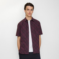 Product Details A short-sleeved cotton shirt woven with the Burberry Check in a seasonal wine red colourway. The style is cut to a relaxed fit. - Button closure - Point collar - Curved hem - Relaxed fit: a looser cut than our regular fit. - Item 81151571 Size & Fit - Length: 76.5cm/30.1in (size UK L) - Model’s height: 191cm/6ft 3in. Model wears size UK L Fabric & Care - 100% cotton - Buttons: mother-of-pearl - Specialist dry clean - Imported