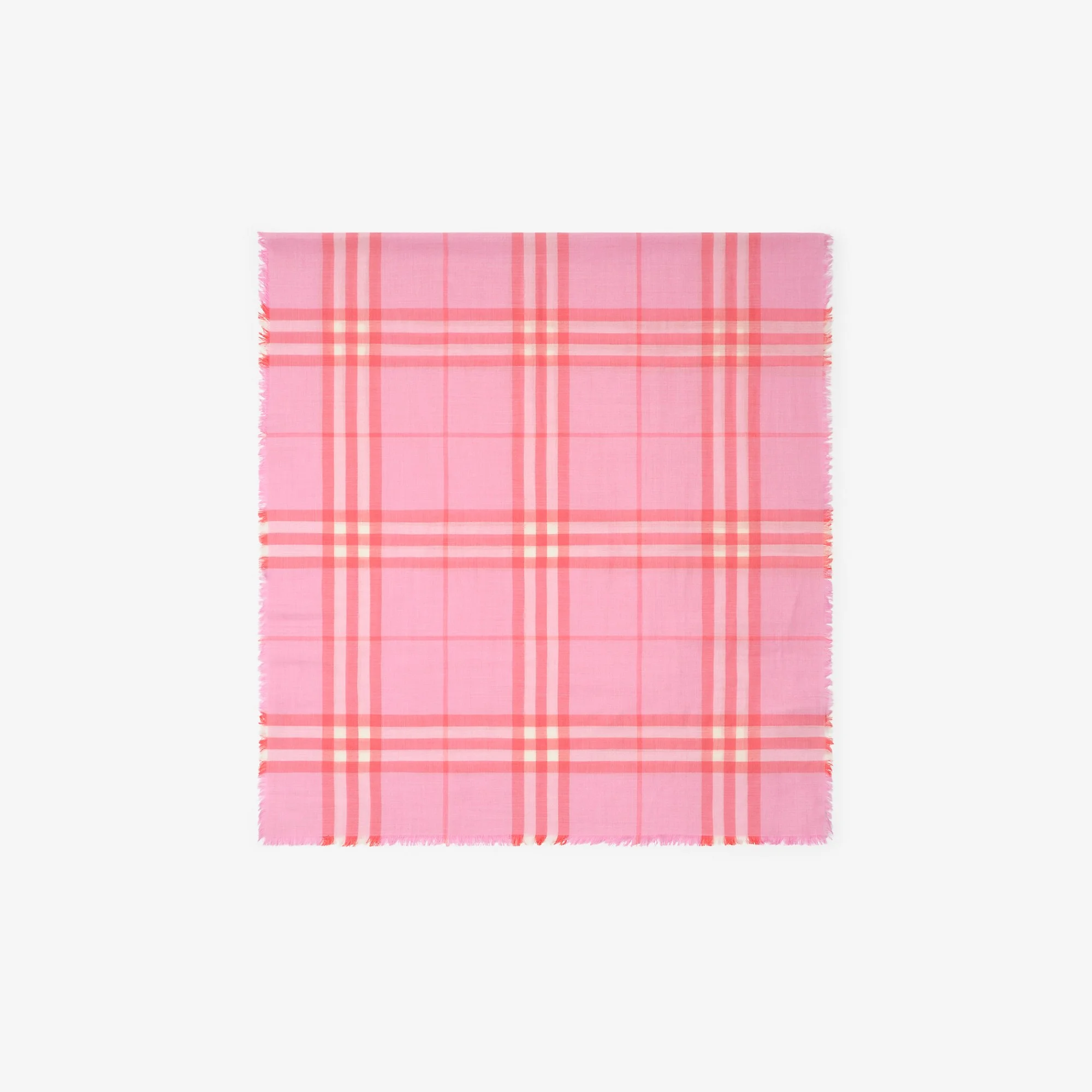 Product Details A scarf made in Italy from lightweight wool-silk gauze. The reversible design is printed with the Burberry Check in seasonal pink colourways. - Rectangular - Eyelash fringing at the edges - Item 81229531 Size & Fit - 200 x 90cm/78.7 x 35.4in Fabric & Care - 52% wool, 48% silk - Dry clean - Made in Italy