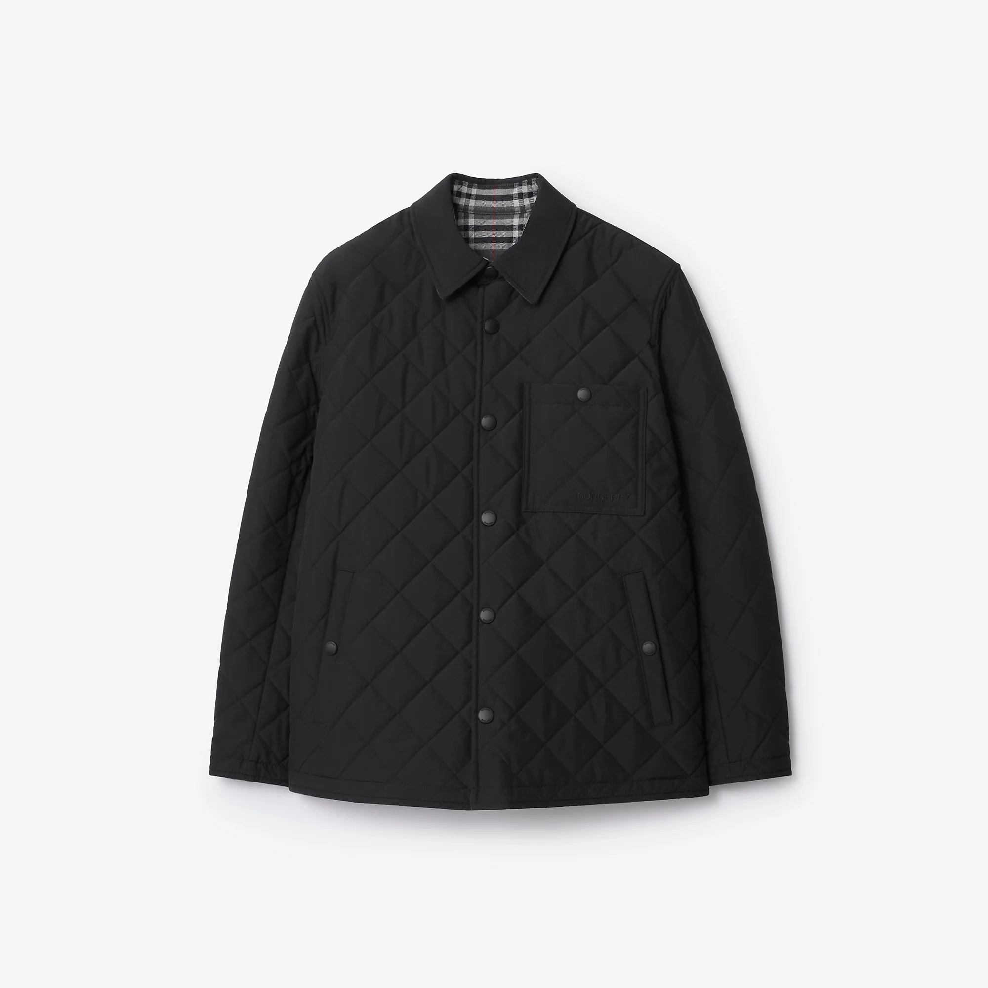 Product Details Relaxed fit: a looser cut than our regular fit. A quilted jacket reversing from a solid colour to brushed cotton twill woven with the Burberry Check. The style is cut to a relaxed fit and embroidered with a tonal logo. - Press-stud closure - Chest press-stud patch pocket, side press-stud welt pockets; reverse chest press-stud patch pocket - Embroidered Burberry lettering at pocket - Item 81193361 Size & Fit - Relaxed fit: a looser cut than our regular fit. - Length: 74cm/29.1in (size UK L) Fabric & Care - Outer: 100% polyester - Reverse: 100% cotton - Filling: 100% polyester fibres - Specialist dry clean - Imported
