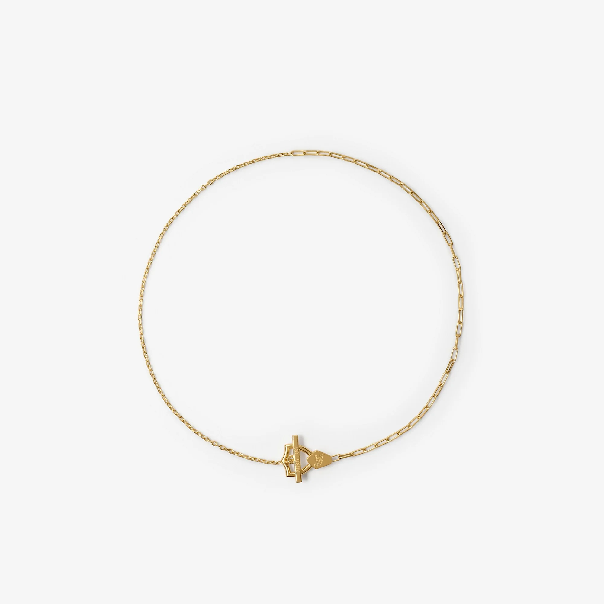 Product Details A necklace made in Italy from brass with gold plating, constructed from chain links in contrasting sizes. The T-bar is secured with a shield shape inspired by our Equestrian Knight Design. - Engraved Burberry lettering at T-bar - Comes with a dust bag - Item 81053411 Size & Fit - Size 38 length: 38cm/15in. Size 58 length: 58cm/22.8in Fabric & Care - 100% brass with gold plating - Made in Italy