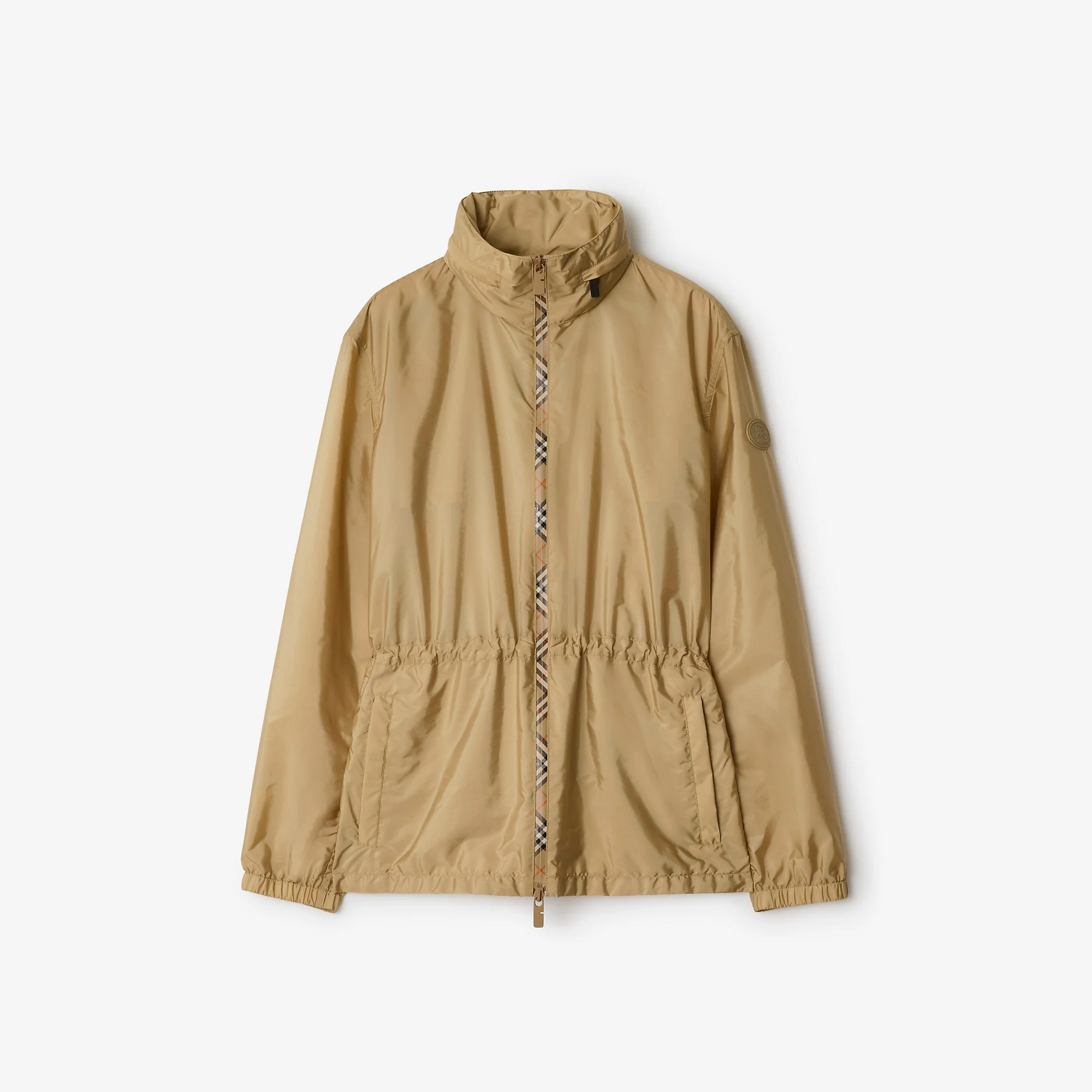 Product Details A short parka made from nylon, cut to a relaxed fit with a drawcord to adjust the waist. The lightweight style is appliqued with our Knight stamp at the sleeve – an archival motif first seen on Burberry bags in the 1980s. A Burberry Check packaway hood is concealed at the funnel neck, matching the zip tape in our signature sand colourway. - Two-way zip closure - Packaway drawcord hood - Drawcord waist - Side zip pockets - Elasticated cuffs - Silicone patch with Equestrian Knight Design at sleeve - Comes with a garment bag - Relaxed fit: a looser cut than our regular fit. - Machine wash - Item 81131071 Size & Fit - Length: 70cm/27.6in (size UK S) Fabric & Care - Outer: 100% polyamide - Hood: 100% polyester - Upper body lining: 100% polyamide - Imported