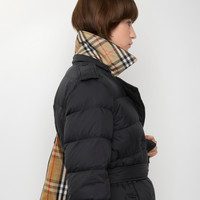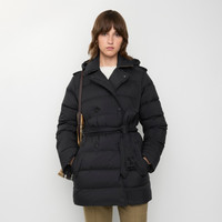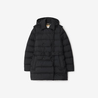 Product Details Inspired by the Burberry trench, a puffer coat in nylon filled with goose down and feathers. The double-breasted design is cut to a regular fit with signature epaulettes and a detachable B buckle belt. Adapt the silhouette by removing the hood and pop the collar to reveal a flash of Burberry Check. - Double-breasted press-stud closure - Detachable drawcord hood - Epaulettes - B buckle belt - Side press-stud welt pockets - Burberry Check undercollar - Comes with a garment bag - Regular fit. Fits true to size, take your normal size. - Machine wash - Item 81103101 Size & Fit - Length: 80cm/31.5in (size UK S) - Model’s height: 180cm/5ft 11in. Model wears size UK S Fabric & Care - Outer: 100% polyamide - Undercollar: 100% polyester - Linings: 100% polyamide; 100% polyester - Filling: 90% goose down, 10% goose feathers - Wadding: 100% polyester fibres - Imported