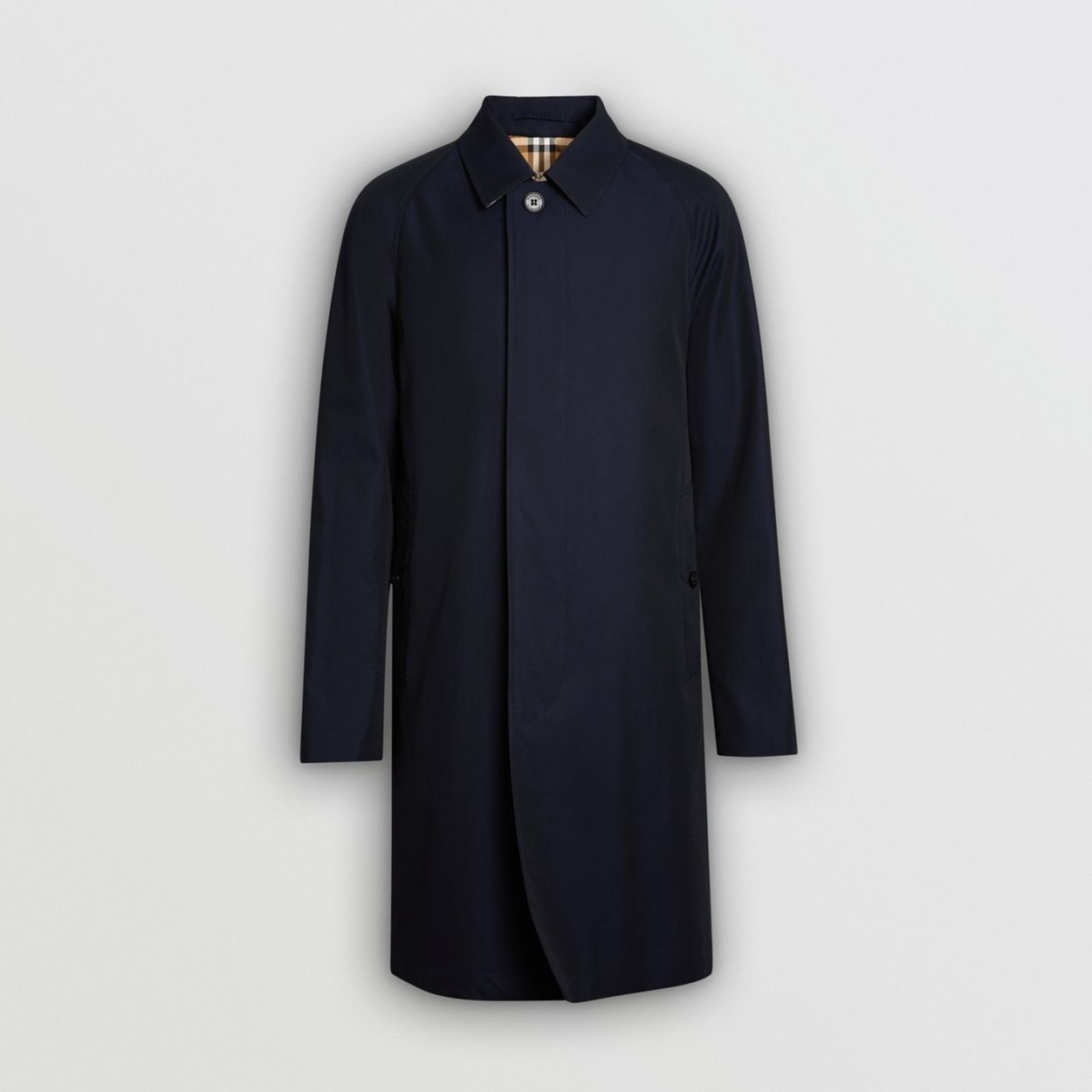 Product Details Inspired by our heritage styles, a car coat in lightweight tropical gabardine. Inside and at the collar is Burberry Check cotton, used to line our coats since the 1920s. The design is cut to a regular fit with raglan sleeves. Please note, the buttons may vary from the style photographed. - Single-breasted button closure - Hook-and-eye collar closure - Throat latch - Side button welt pockets - Button-tab cuffs - Back button vent - Burberry Check lining and undercollar - Regular fit. Fits true to size, take your normal size. - Item 80021331 Size & Fit - Length: 97cm/38.2in (size IT 48) - Model’s height: 188cm/6ft 2in. Model wears size IT 48 Fabric & Care - Outer: 100% cotton - Undercollar: 100% cotton - Lining: 100% cotton - Sleeve lining: 100% viscose - Buckle: 100% leather - Specialist dry clean - Made in Italy