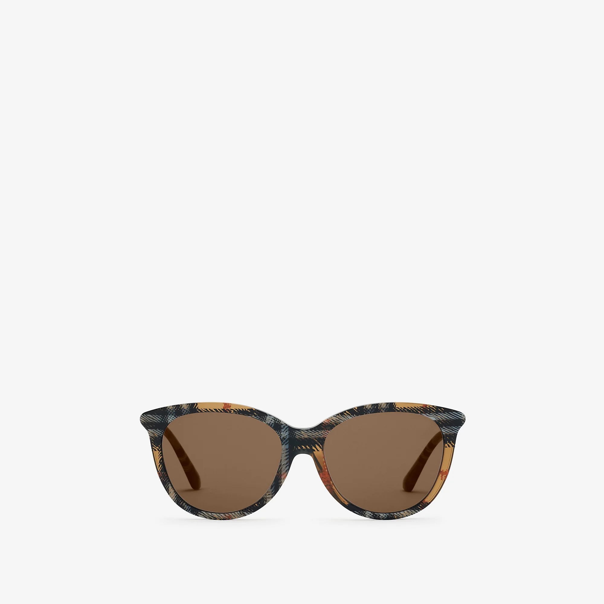 Product Details A pair of oversized round-frame sunglasses made in Italy from acetate. The contrasting temples are patterned with the Burberry Check and our logo. - Scratch-resistant dark brown lenses with 100% UV protection - Printed Burberry lettering at temples - Comes with a hard leather case and cleaning cloth - Also available in an alternative fit - Item 40845061 Size & Fit - Frame width: 14.6cm/5.8in. Frame height: 5.3cm/2.1in Fabric & Care - Frame: 100% acetate* - *The bio-based acetate used for the frame contains at least 50% bio-based content derived from plant-based renewable resources - Made in Italy