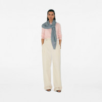 Product Details A lightweight scarf made in Italy from soft wool silk, jacquard-woven with a tonal Burberry Check. The style is embroidered with the Knight stamp, an archival motif from the 1980s. - Rectangular - Eyelash fringing at the edges - Embroidered Equestrian Knight Design at corner - Item 81106531 Size & Fit - 200 x 90cm/78.7 x 35.4in Fabric & Care - 52% wool, 48% silk - Dry clean - Made in Italy
