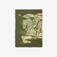Product Details An Italian-made scarf in wool, screen-printed with the Equestrian Knight Design and our logo. The lightweight style is bordered with delicate fringing. - Rectangular - Eyelash fringing at edges - Printed Burberry lettering at corners - Item 81130291 Size & Fit - 200 x 70cm/78.7 x 27.6in Fabric & Care - 100% wool - Dry clean - Made in Italy