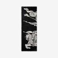 Product Details An Italian-made scarf in wool, screen-printed with the Equestrian Knight Design and our logo. The lightweight style is bordered with delicate fringing. - Rectangular - Eyelash fringing at edges - Printed Burberry lettering at corners - Item 81130321 Size & Fit - 200 x 70cm/78.7 x 27.6in Fabric & Care - 100% wool - Dry clean - Made in Italy